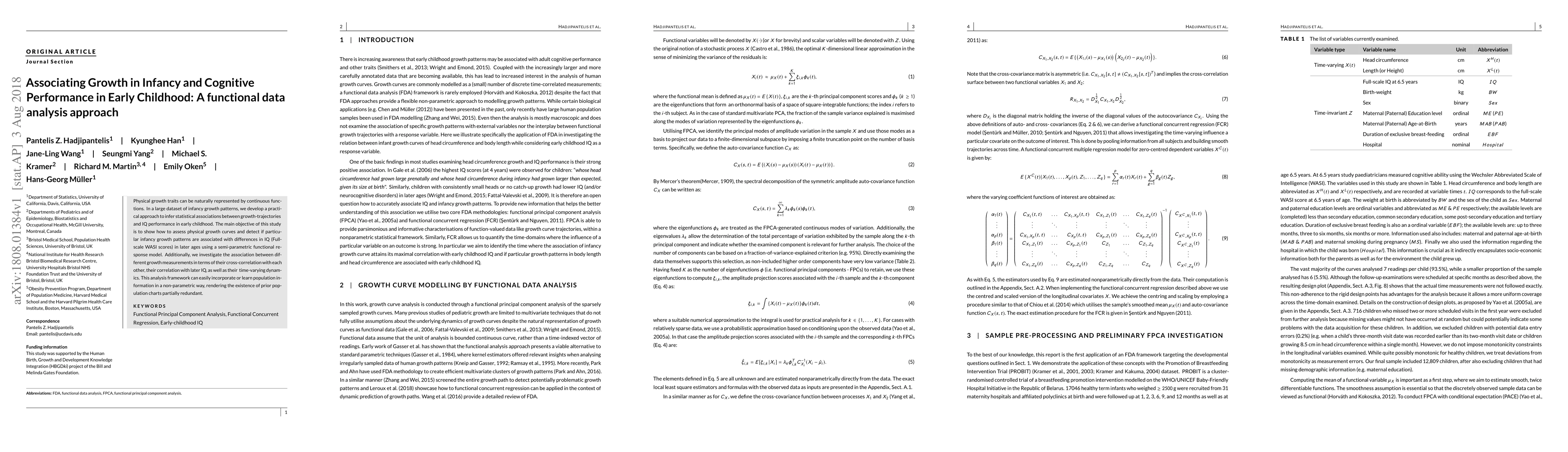 This study uses a new approach to analyze infancy growth patterns and their association with IQ performance in early childhood. It provides a practical method for assessing physical growth curves and detecting correlations between different growth measurements and later IQ scores.