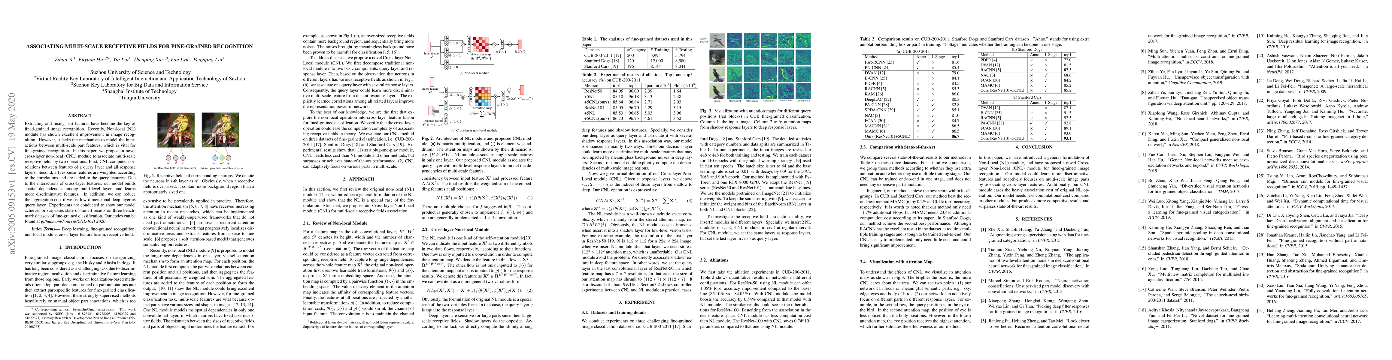 This paper proposes a novel cross-layer non-local (CNL) module to enhance fine-grained recognition by associating multi-scale receptive fields through correlation computation and weighted feature aggregation. The model achieves state-of-the-art results on fine-grained classification benchmarks by building spatial dependencies among multi-level layers.