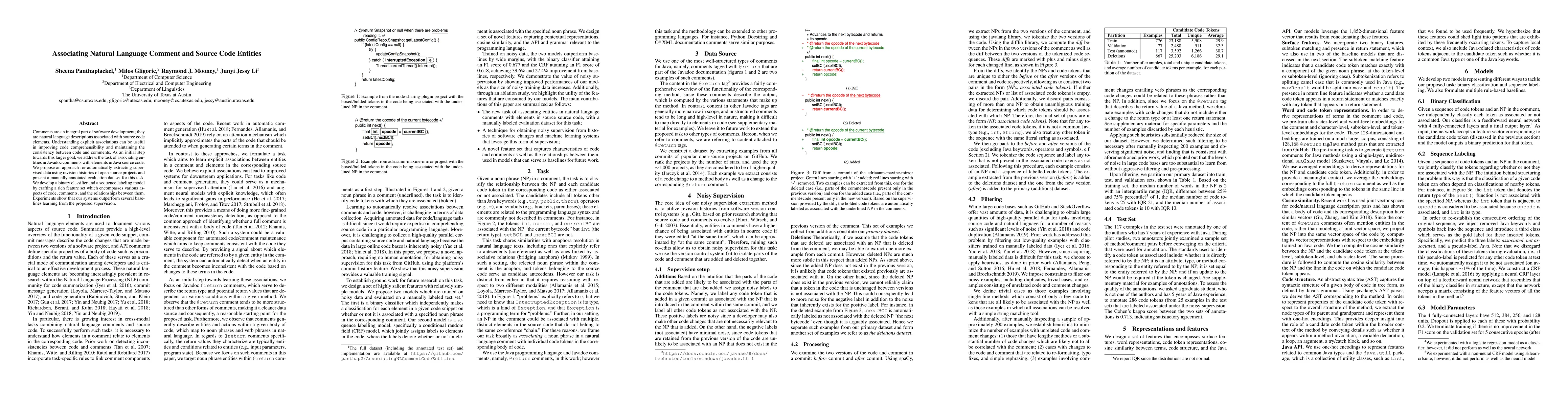 This paper proposes an approach to automatically associate entities in Javadoc comments with corresponding Java source code elements using revision histories from open-source projects. It introduces a manually annotated dataset and develops classifiers to improve code comprehensibility and maintain consistency between comments and code.