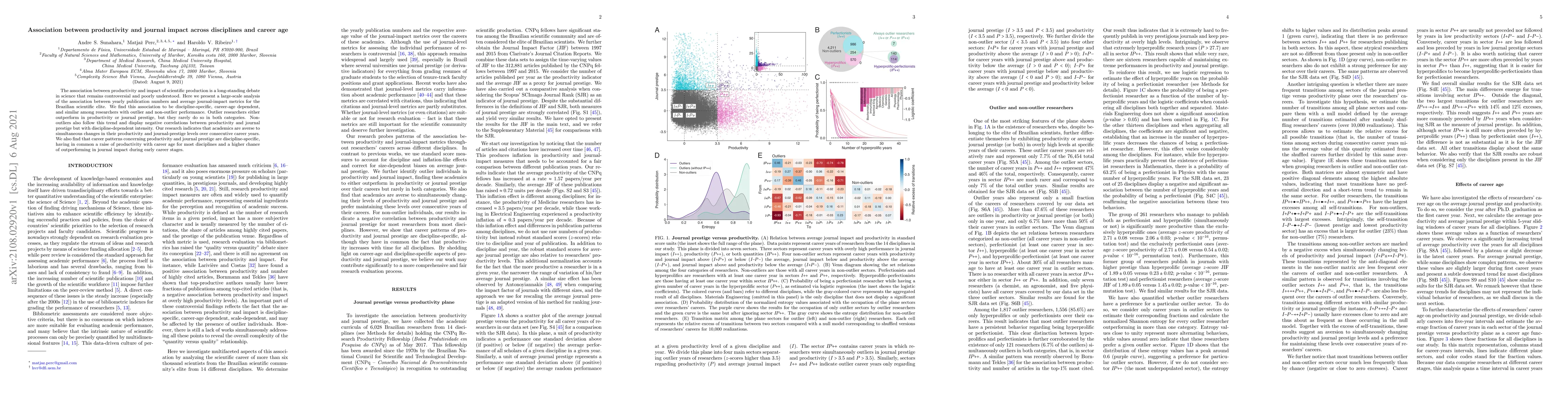 This study reveals a discipline-specific, career-age dependent relationship between productivity and journal impact among Brazilian scientists, showing that productivity and journal prestige are often inversely correlated, with early career stages favoring higher journal impact. Outlier researchers excel in either productivity or journal prestige but not both.