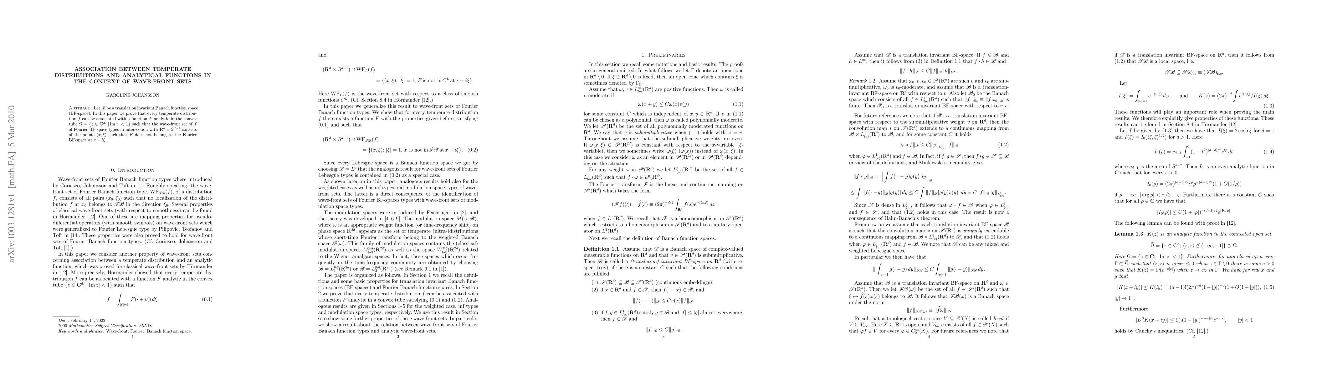 Let B be a translation invariant Banach function space (BF-space). In this paper we prove that every temperate distribution f can be associated with a function F analytic in the convex tube Omega={z in C^d; |Im z|<1} such that the wave-front set of f of Fourier BF-space types in intersection with R^d \times S^{d-1} consists of the points (x,\xi) such that F does not belong to the Fourier BF-space at x-i\xi.