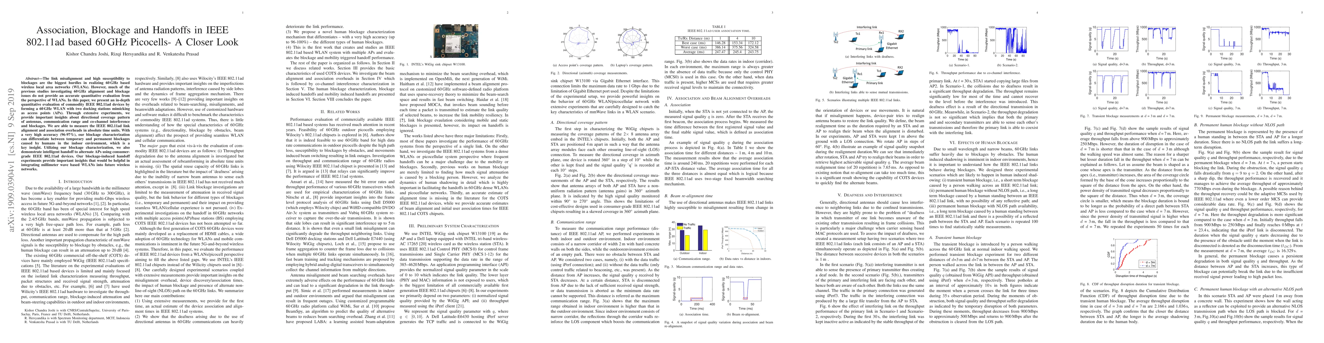 This paper conducts an in-depth quantitative evaluation of IEEE 802.11ad devices in 60GHz WLANs, revealing insights into directional coverage, communication range, and co-channel interference. It accurately differentiates between temporary and permanent blockages, enabling intelligent handoff to alternate access points.