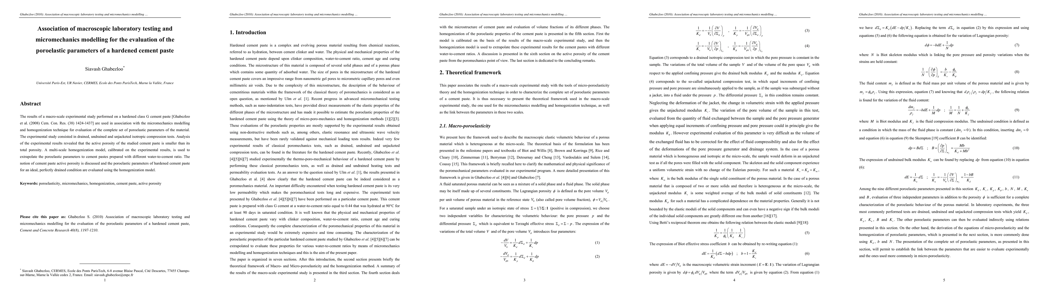 This paper combines macroscopic laboratory testing and micromechanics modelling to evaluate the poroelastic parameters of hardened cement paste. Experimental results from compression tests are used to calibrate a homogenization model, which extrapolates these parameters for cement pastes with varying water-to-cement ratios.