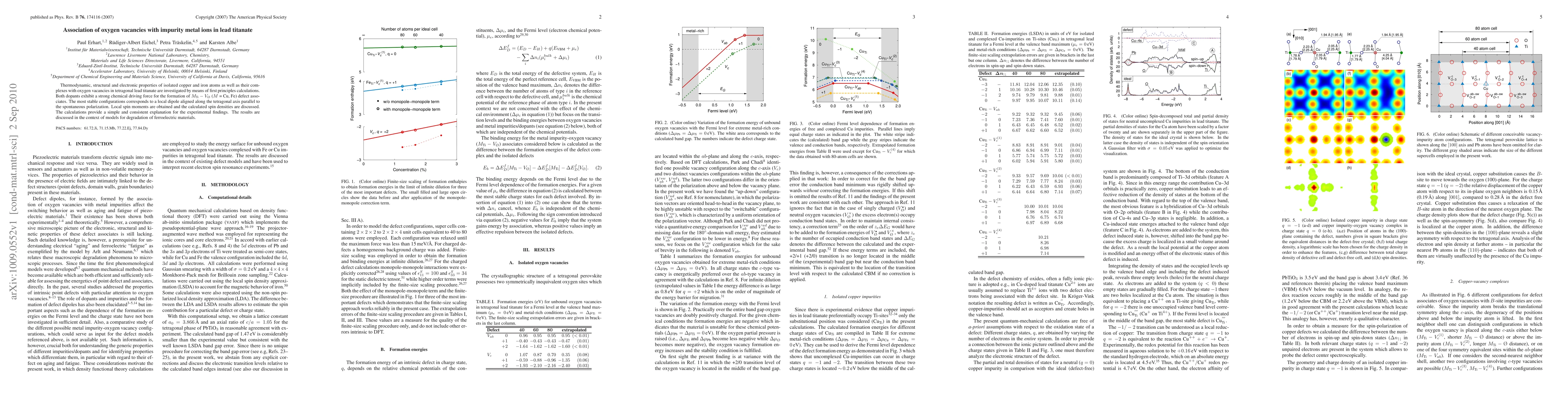This study investigates the thermodynamic, structural, and electronic properties of copper and iron impurities in lead titanate, focusing on their interactions with oxygen vacancies. The findings reveal strong associations between these impurities and oxygen vacancies, leading to stable defect configurations that align with spontaneous polarization.