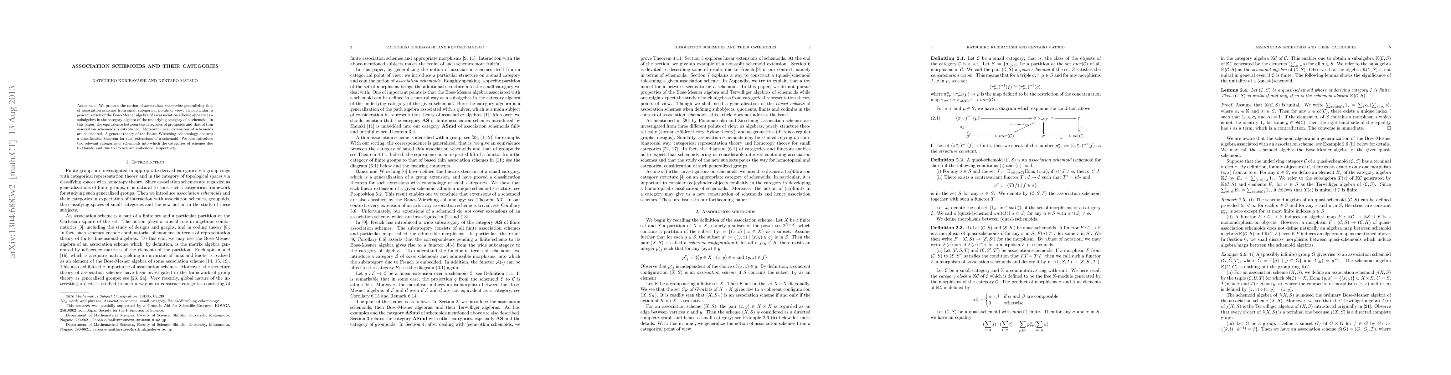 We propose the notion of association schemoids generalizing that of association schemes from small categorical points of view. In particular, a generalization of the Bose-Mesner algebra of an association scheme appears as a subalgebra in the category algebra of the underlying category of a schemoid. In this paper, the equivalence between the categories of grouopids and that of thin association schemoids is established. Moreover linear extensions of schemoids are considered. A general theory of the Baues-Wirsching cohomology deduces a classification theorem for such extensions of a schemoid. We also introduce two relevant categories of schemoids into which the categories of schemes due to Hanaki and due to French are embedded, respectively.