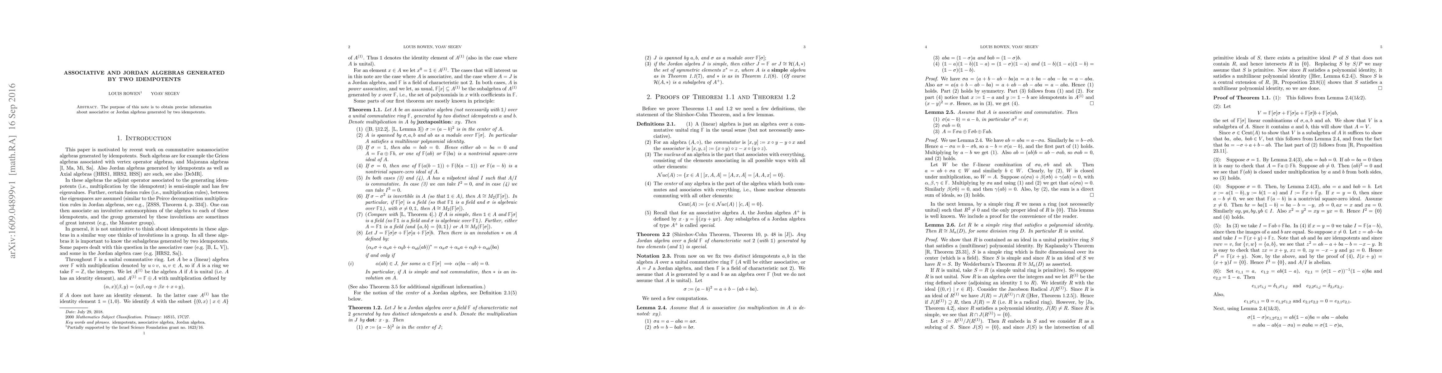 Summary: This paper precisely describes associative and Jordan algebras that are generated by two idempotent elements, providing detailed insights into their structural properties and algebraic characteristics.