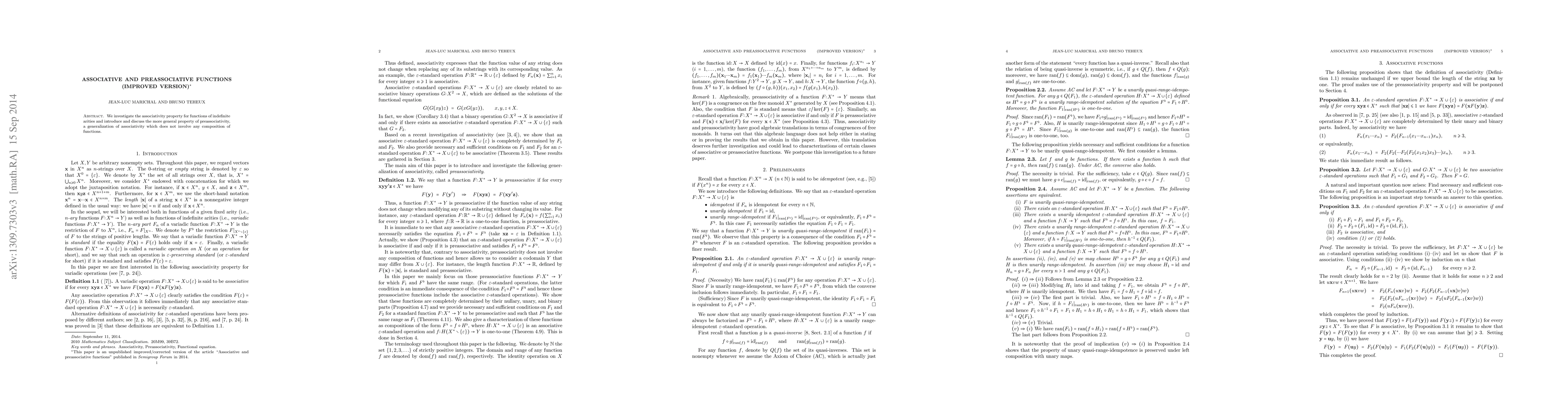 We investigate the associativity property for functions of indefinite arities and introduce and discuss the more general property of preassociativity, a generalization of associativity which does not involve any composition of functions.