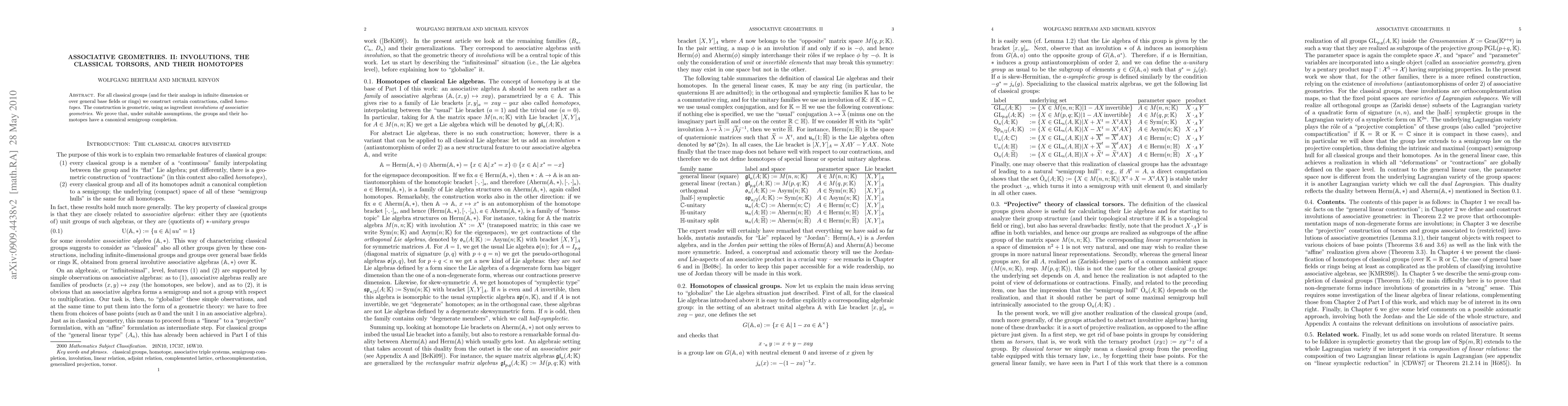 This paper constructs geometric contractions called "homotopes" for classical groups using involutions of associative geometries. It demonstrates that these groups and their homotopes possess a canonical semigroup completion under specific conditions.