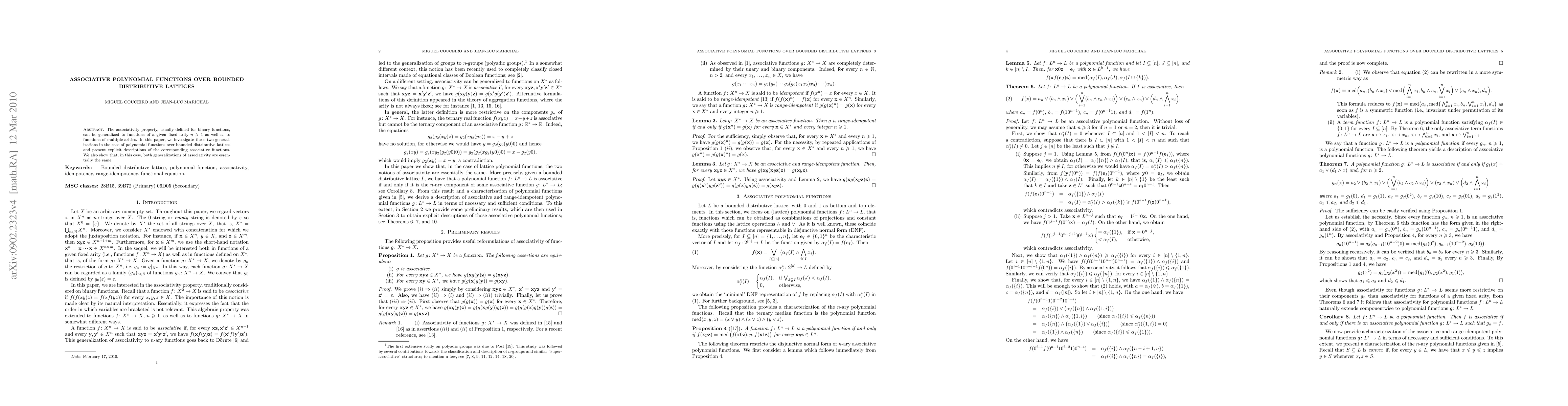 The paper presents a comprehensive analysis of associative polynomial functions over bounded distributive lattices, demonstrating equivalence between generalized associativity notions and providing explicit descriptions of such functions.