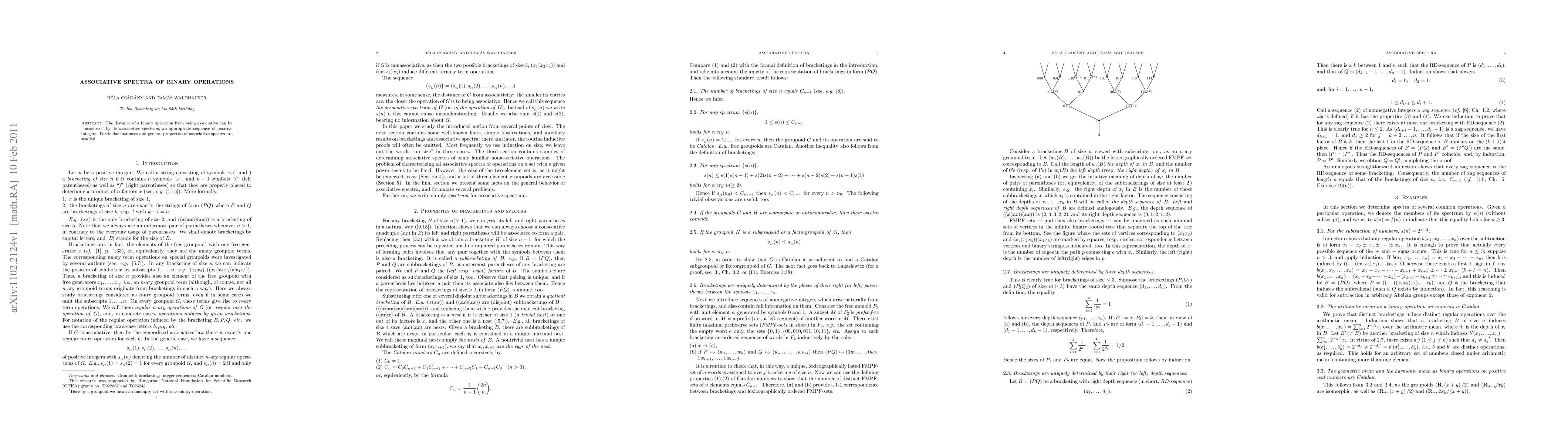 The distance of a binary operation from being associative can be "measured" by its associative spectrum, an appropriate sequence of positive integers. Particular instances and general properties of associative spectra are studied.