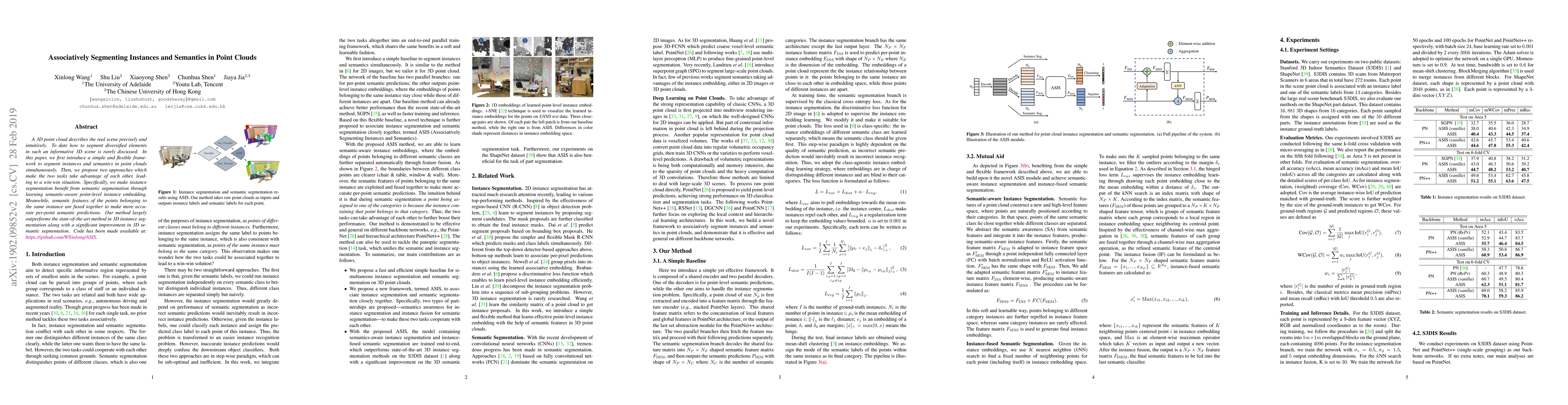 This paper presents a framework for simultaneously segmenting instances and semantics in 3D point clouds, proposing two complementary approaches that enhance both tasks. The method achieves superior performance over existing methods in both 3D instance and semantic segmentation.