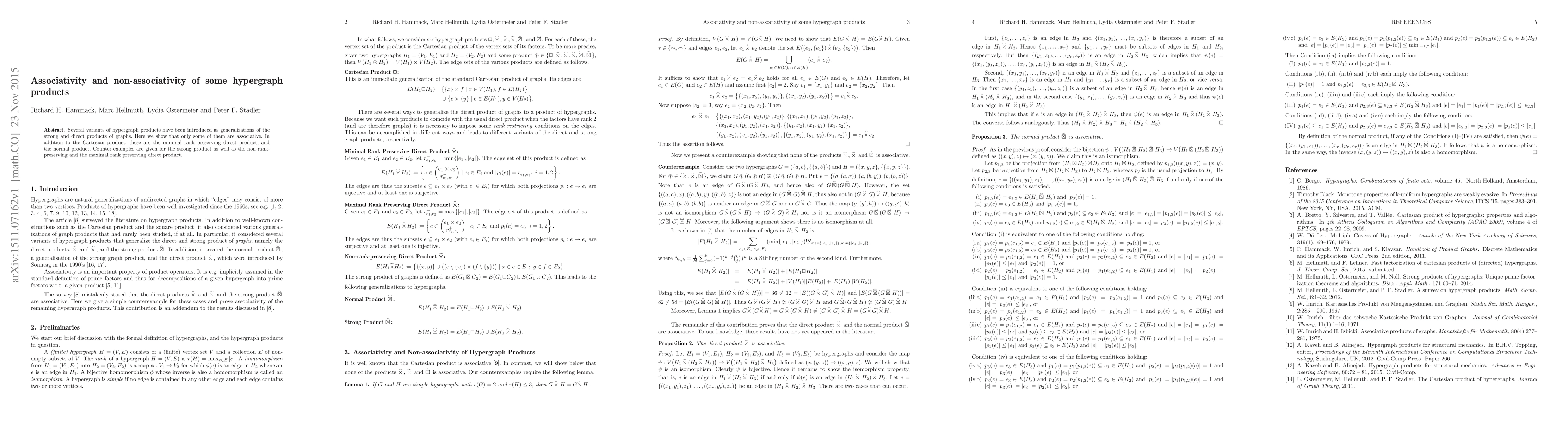 Several variants of hypergraph products have been introduced as generalizations of the strong and direct products of graphs. Here we show that only some of them are associative. In addition to the Cartesian product, these are the minimal rank preserving direct product, and the normal product. Counter-examples are given for the strong product as well as the non-rank-preserving and the maximal rank preserving direct product.