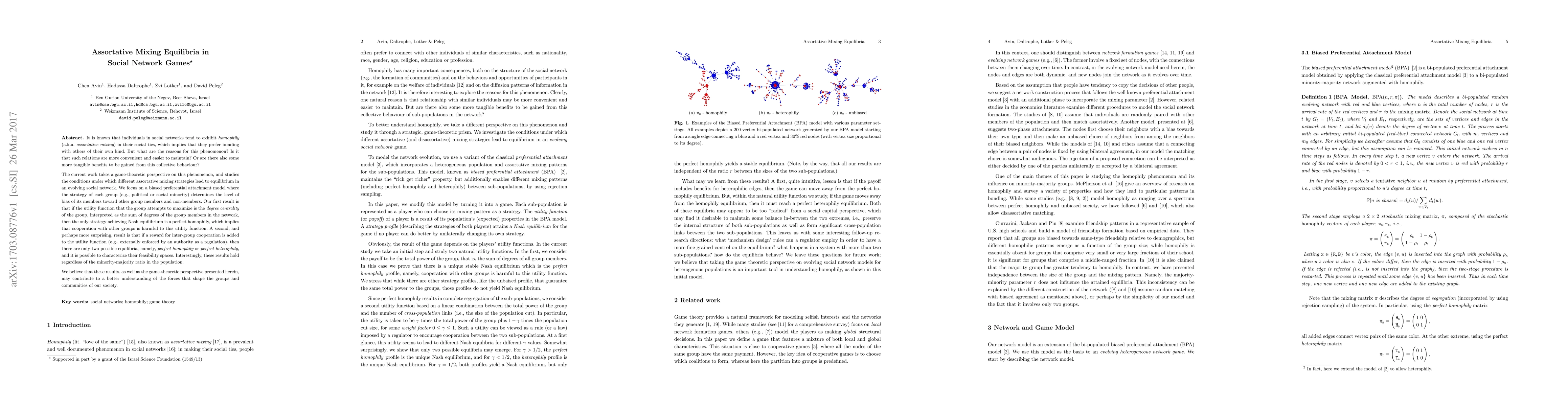 It is known that individuals in social networks tend to exhibit homophily (a.k.a. assortative mixing) in their social ties, which implies that they prefer bonding with others of their own kind. But what are the reasons for this phenomenon? Is it that such relations are more convenient and easier to maintain? Or are there also some more tangible benefits to be gained from this collective behaviour? The current work takes a game-theoretic perspective on this phenomenon, and studies the conditions under which different assortative mixing strategies lead to equilibrium in an evolving social network. We focus on a biased preferential attachment model where the strategy of each group (e.g., political or social minority) determines the level of bias of its members toward other group members and non-members. Our first result is that if the utility function that the group attempts to maximize is the degree centrality of the group, interpreted as the sum of degrees of the group members in the network, then the only strategy achieving Nash equilibrium is a perfect homophily, which implies that cooperation with other groups is harmful to this utility function. A second, and perhaps more surprising, result is that if a reward for inter-group cooperation is added to the utility function (e.g., externally enforced by an authority as a regulation), then there are only two possible equilibria, namely, perfect homophily or perfect heterophily, and it is possible to characterize their feasibility spaces. Interestingly, these results hold regardless of the minority-majority ratio in the population. We believe that these results, as well as the game-theoretic perspective presented herein, may contribute to a better understanding of the forces that shape the groups and communities of our society.