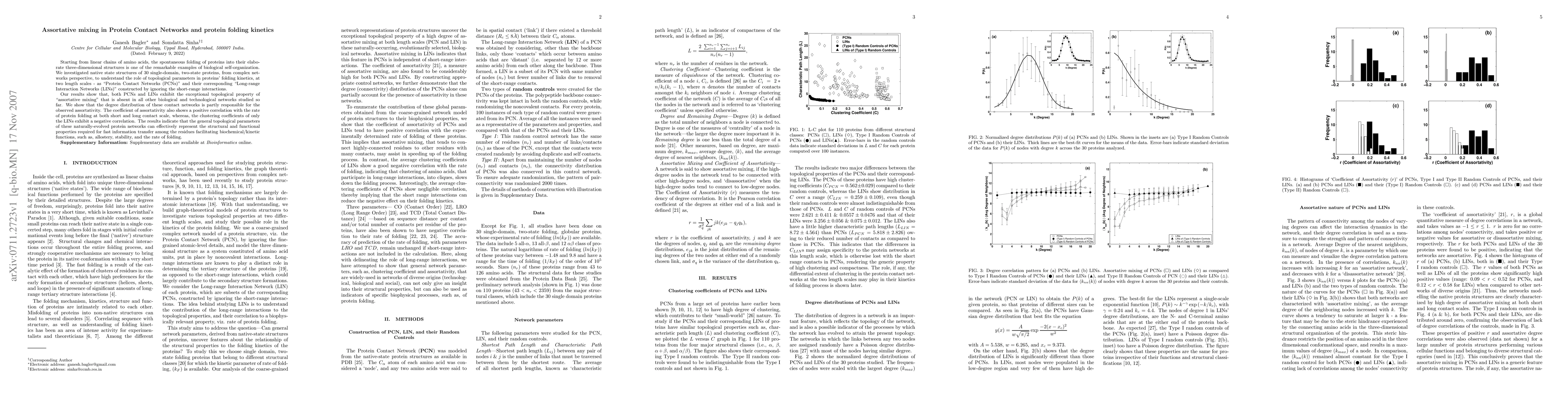 The study examines 30 single-domain proteins, revealing their native structures exhibit 'assortative mixing' in Protein Contact Networks (PCNs) and Long-range Interaction Networks (LINs), a unique topological property absent in other networks. This assortativity correlates positively with protein folding rates, suggesting network topology influences folding kinetics and functional properties.