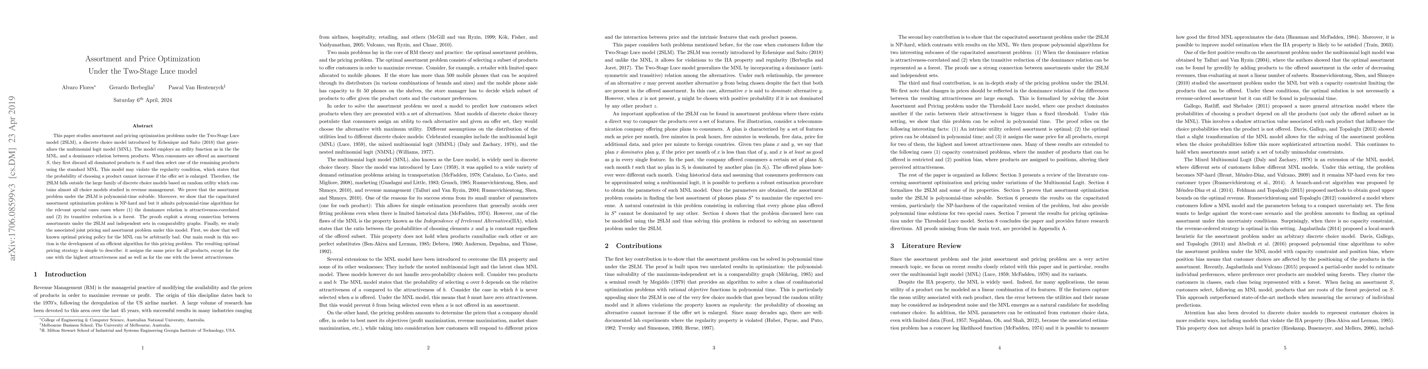 A new model called Two-Stage Luce (2SLM) is used to optimize assortment and pricing in a way that respects dominance relationships between products. The study finds efficient algorithms for solving certain optimization problems under this model.