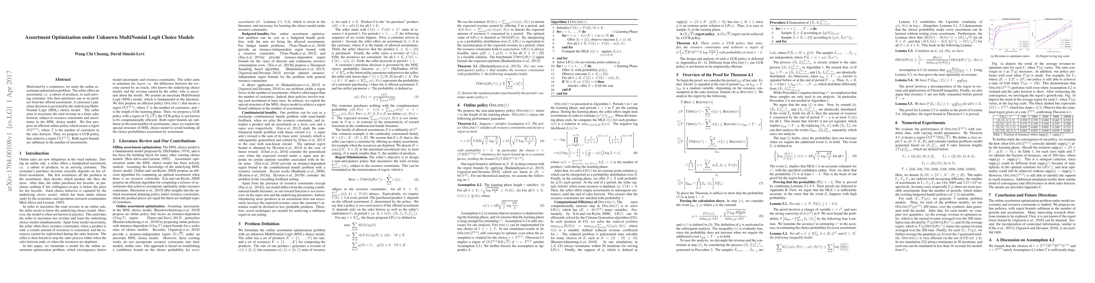 The paper proposes and analyzes online policies for assortment optimization under uncertainty in MultiNomial Logit (MNL) choice models, specifically targeting e-commerce scenarios with resource constraints.