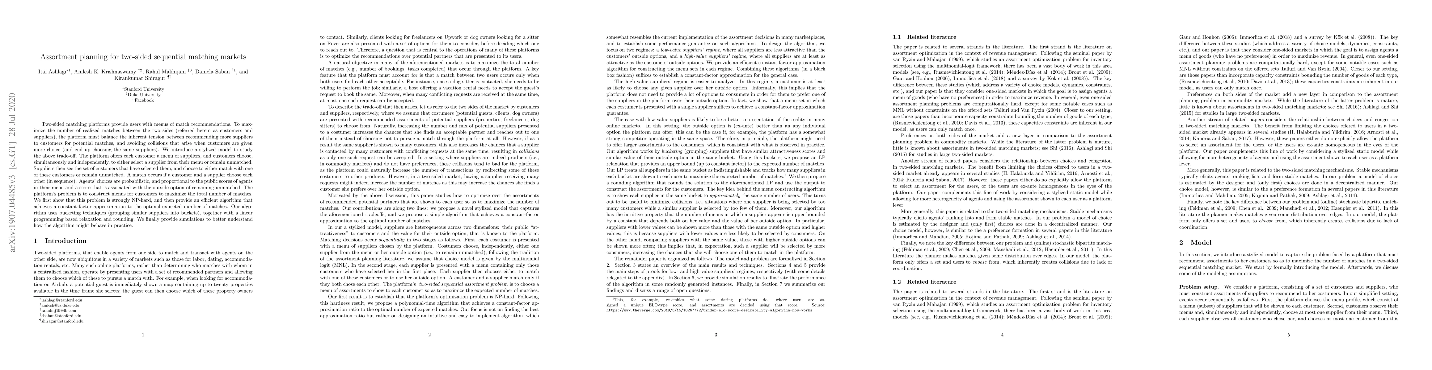 Two-sided matching platforms provide users with menus of match recommendations. To maximize the number of realized matches between the two sides (referred here as customers and suppliers), the platform must balance the inherent tension between recommending customers more potential suppliers to match with and avoiding potential collisions. We introduce a stylized model to study the above trade-off. The platform offers each customer a menu of suppliers, and customers choose, simultaneously and independently, either a supplier from their menu or to remain unmatched. Suppliers then see the set of customers that have selected them, and choose to either match with one of these customers or to remain unmatched. A match occurs if a customer and a supplier choose each other (in sequence). Agents' choices are probabilistic, and proportional to public scores of agents in their menu and a score that is associated with remaining unmatched. The platform's problem is to construct menus for costumers to maximize the number of matches. This problem is shown to be strongly NP-hard via a reduction from 3-partition. We provide an efficient algorithm that achieves a constant-factor approximation to the expected number of matches.