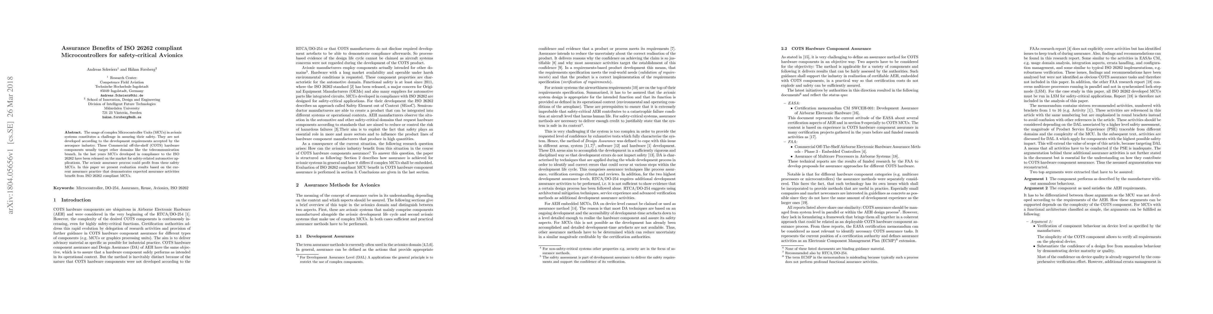 This paper evaluates the assurance benefits of using ISO 26262 compliant microcontrollers in safety-critical avionic systems, demonstrating that these components can enhance the avionic assurance process by aligning with stringent safety standards. The results show that such microcontrollers can improve safety assurance activities in the aerospace industry.