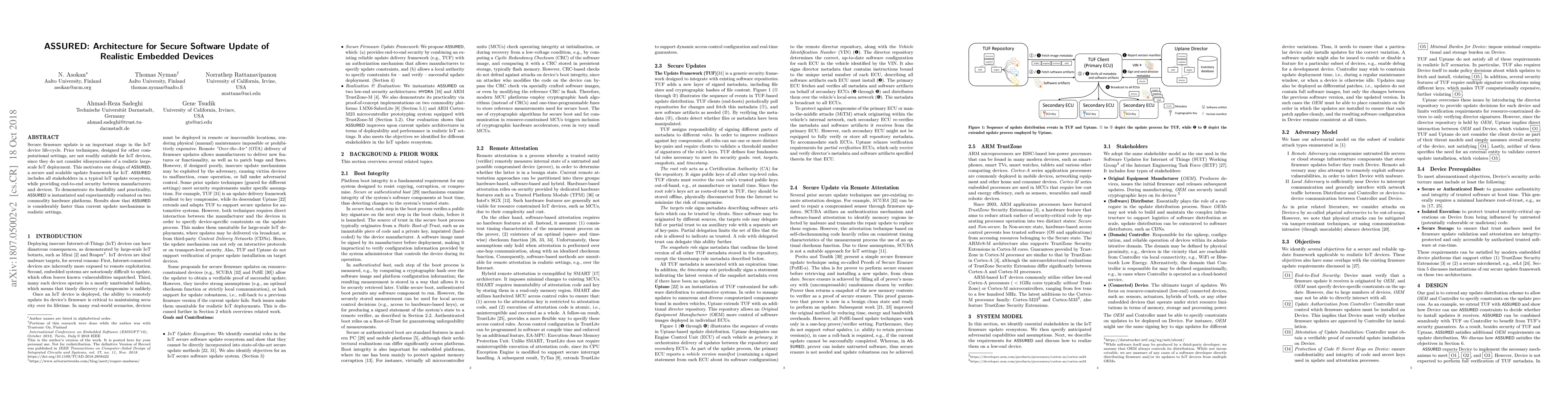 ASSURED is a secure and scalable framework designed for IoT firmware updates, addressing the unique challenges of large-scale IoT deployments. Experimental results show that ASSURED significantly outperforms existing methods in realistic update scenarios.
