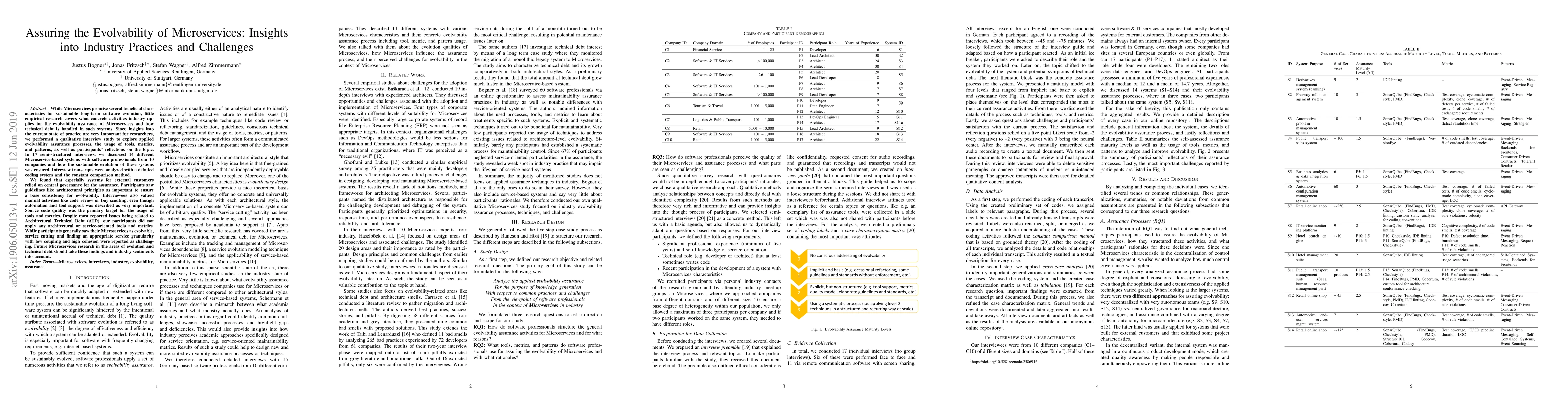 This study explores industry practices for ensuring evolvability in Microservices through qualitative interviews with professionals from 10 companies. It reveals that central governance and architectural guidelines play a crucial role, while manual code reviews and boy scouting are valued, despite limited use of architectural tools and metrics to manage technical debt.