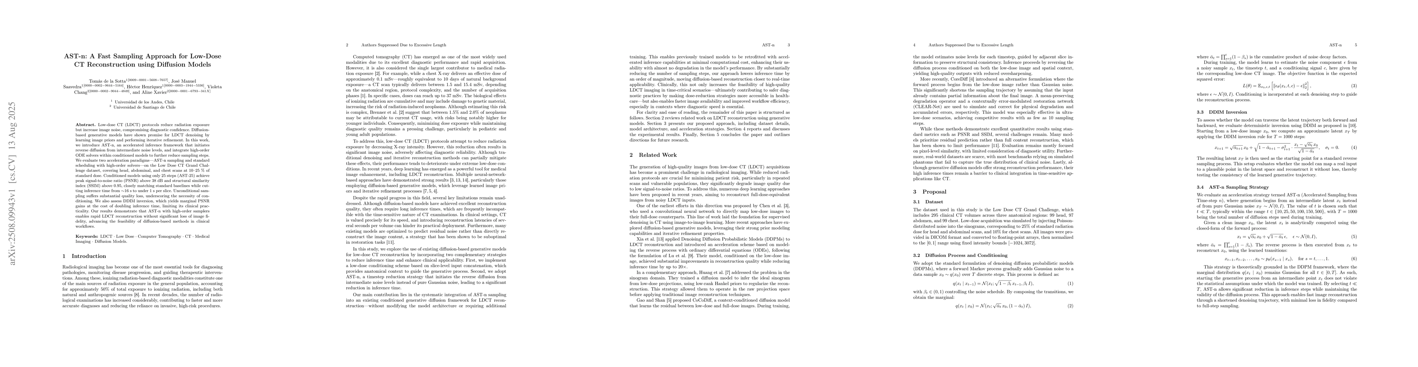 The research introduces AST-n, a fast sampling approach for low-dose CT reconstruction using diffusion models. It accelerates inference by initiating reverse diffusion from intermediate noise levels and integrating high-order ODE solvers within conditioned models to reduce sampling steps.