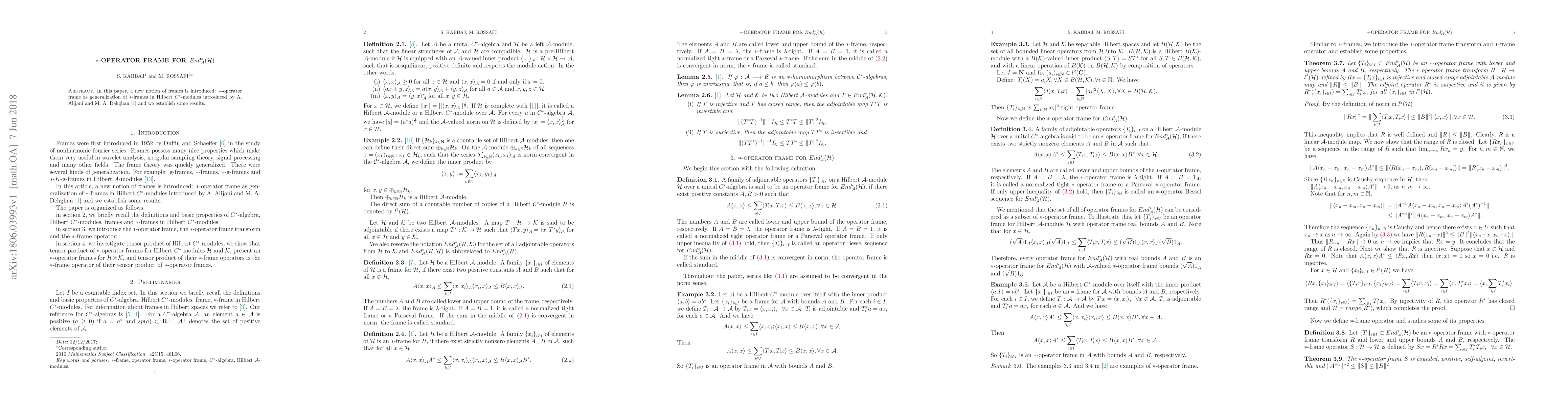 In this paper, a new notion of frames is introduced: $\ast$-operator frame as generalization of $\ast$-frames in Hilbert $C^{\ast}$-modules introduced by A. Alijani and M. A. Dehghan \cite{Ali} and we establish some results.