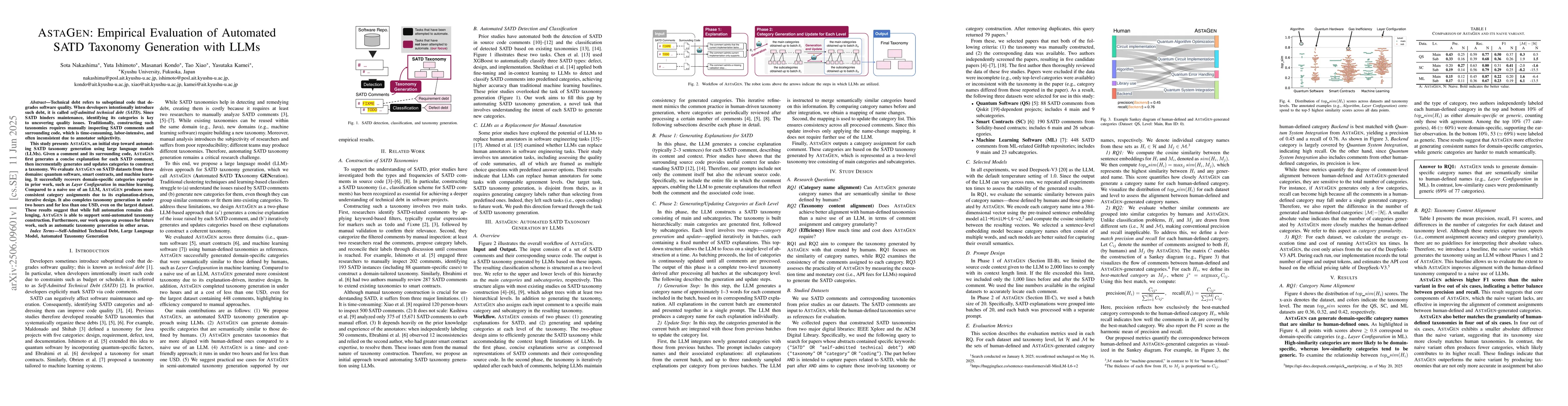 A new study introduces ASTAGEN, a tool that uses large language models to automatically generate taxonomies for self-admitted technical debt in software, achieving consistent category assignments and completing generation in under two hours.