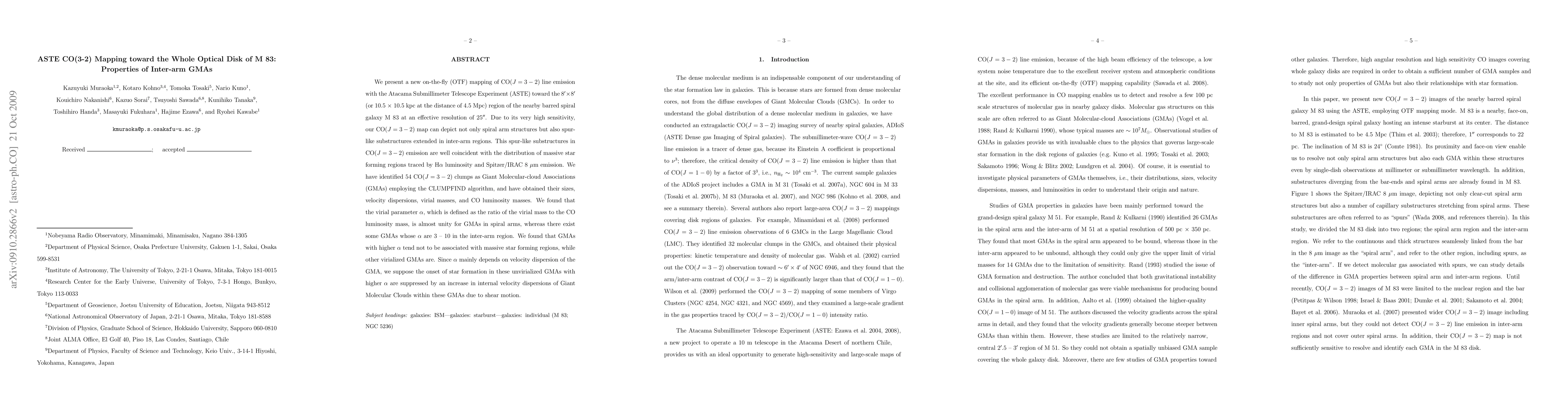 Researchers mapped CO(J=3-2) line emission in M 83 to reveal giant molecular cloud associations (GMAs) with properties like size, velocity dispersion, and mass. The study found that GMAs in spiral arms have low virial parameters, while those in inter-arm regions have higher parameters that may suppress star formation.