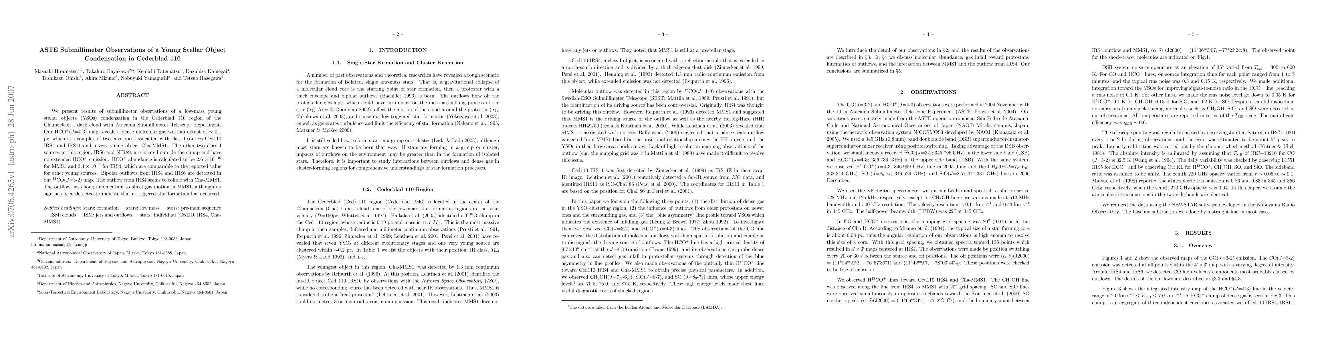 This study uses submillimeter observations from the Atacama Submillimeter Telescope Experiment to analyze a low-mass young stellar object condensation in the Cederblad 110 region, revealing dense molecular gas and complex envelopes associated with class I sources. The HCO+ abundance and bipolar outflows suggest interactions between IRS4 and MMS1, though no triggered star formation has been detected.