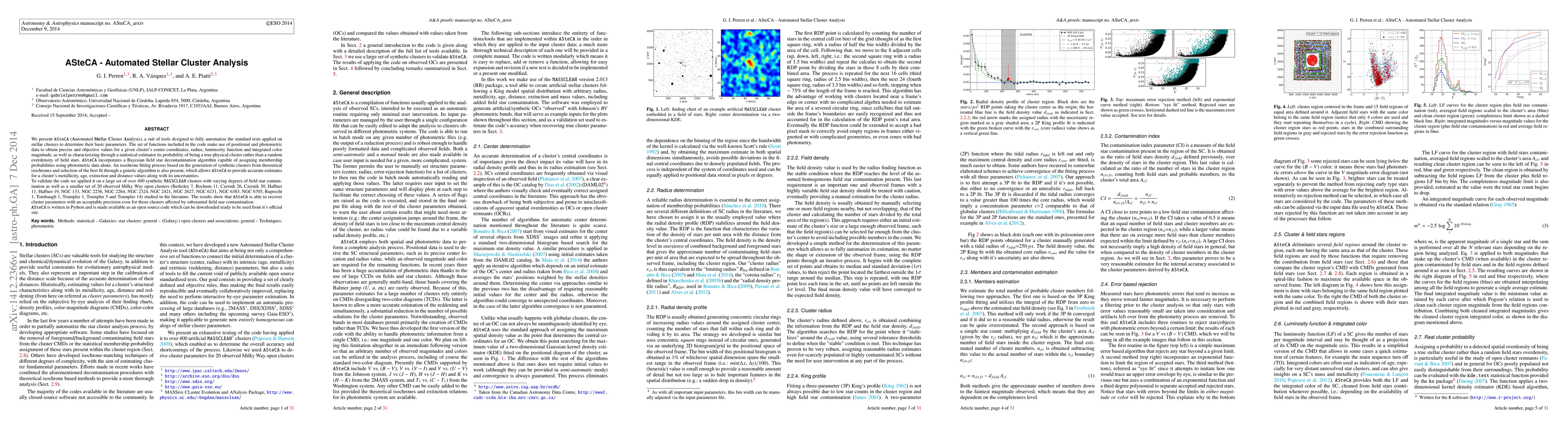We present ASteCA (Automated Stellar Cluster Analysis), a suit of tools designed to fully automatize the standard tests applied on stellar clusters to determine their basic parameters. The set of functions included in the code make use of positional and photometric data to obtain precise and objective values for a given cluster's center coordinates, radius, luminosity function and integrated color magnitude, as well as characterizing through a statistical estimator its probability of being a true physical cluster rather than a random overdensity of field stars. ASteCA incorporates a Bayesian field star decontamination algorithm capable of assigning membership probabilities using photometric data alone. An isochrone fitting process based on the generation of synthetic clusters from theoretical isochrones and selection of the best fit through a genetic algorithm is also present, which allows ASteCA to provide accurate estimates for a cluster's metallicity, age, extinction and distance values along with its uncertainties. To validate the code we applied it on a large set of over 400 synthetic MASSCLEAN clusters with varying degrees of field star contamination as well as a smaller set of 20 observed Milky Way open clusters (Berkeley 7, Bochum 11, Czernik 26, Czernik 30, Haffner 11, Haffner 19, NGC 133, NGC 2236, NGC 2264, NGC 2324, NGC 2421, NGC 2627, NGC 6231, NGC 6383, NGC 6705, Ruprecht 1, Tombaugh 1, Trumpler 1, Trumpler 5 and Trumpler 14) studied in the literature. The results show that ASteCA is able to recover cluster parameters with an acceptable precision even for those clusters affected by substantial field star contamination. ASteCA is written in Python and is made available as an open source code which can be downloaded ready to be used from it's official site.