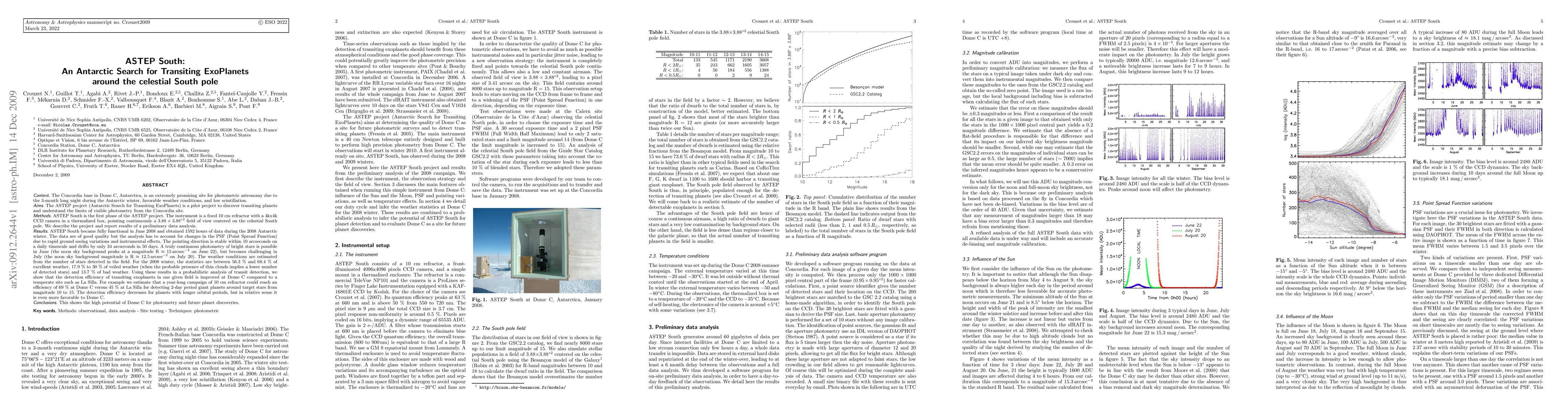 ASTEP South, a 10 cm refractor telescope in Antarctica, achieved high-quality data during the 2008 winter, demonstrating improved efficiency for exoplanet transit detection compared to temperate sites like La Silla, with an estimated 69% efficiency for Dome C versus 45% for La Silla.