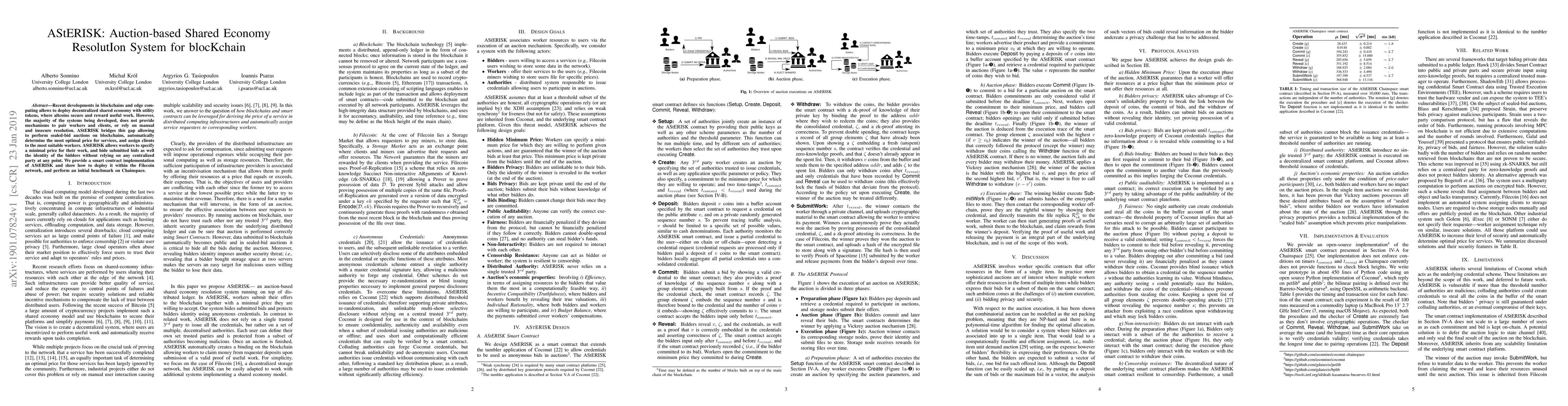 AStERISK introduces a blockchain-based auction system for decentralized shared economy, enabling automated, secure, and optimal pairing of workers and clients through sealed-bid auctions without central authorities. The system is implemented as a smart contract on the Filecoin network and benchmarked on Chainspace.