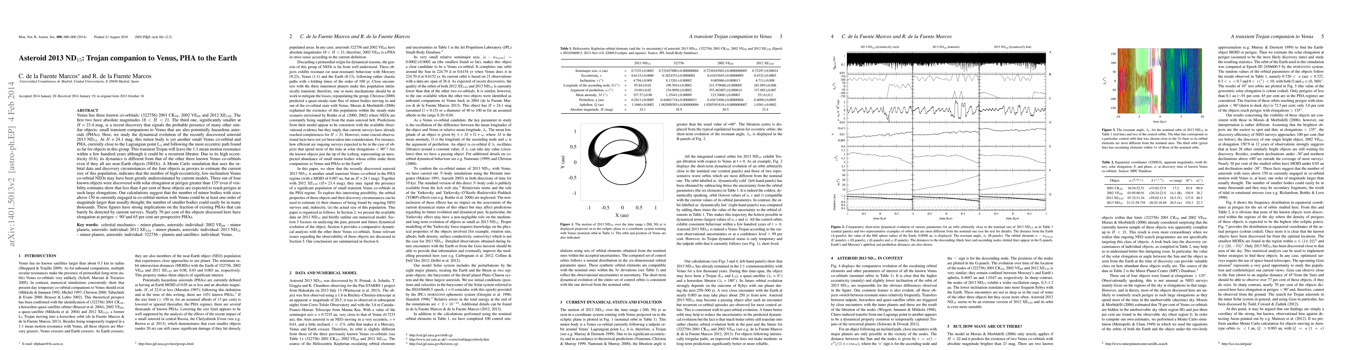 A recent study finds that asteroid 2013 ND15 is a Trojan companion to Venus, part of a population of small, potentially hazardous asteroids with high eccentricity orbits.