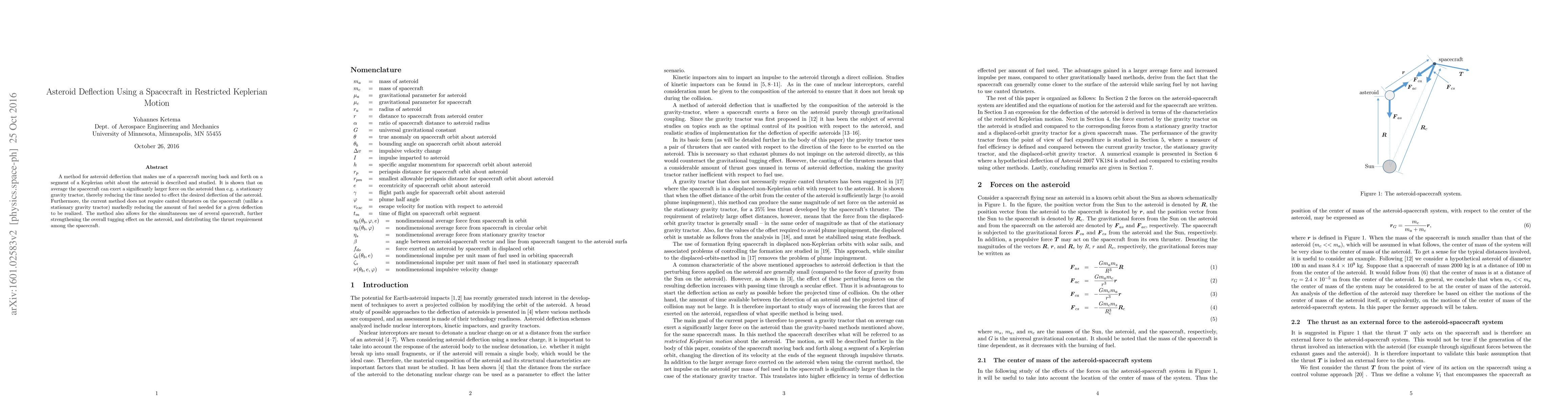 This paper proposes a method for asteroid deflection using a spacecraft on a restricted Keplerian orbit, which can exert a larger force on the asteroid than a stationary gravity tractor, reducing deflection time and fuel consumption. The method also allows multiple spacecraft to work together, enhancing the deflection effect.
