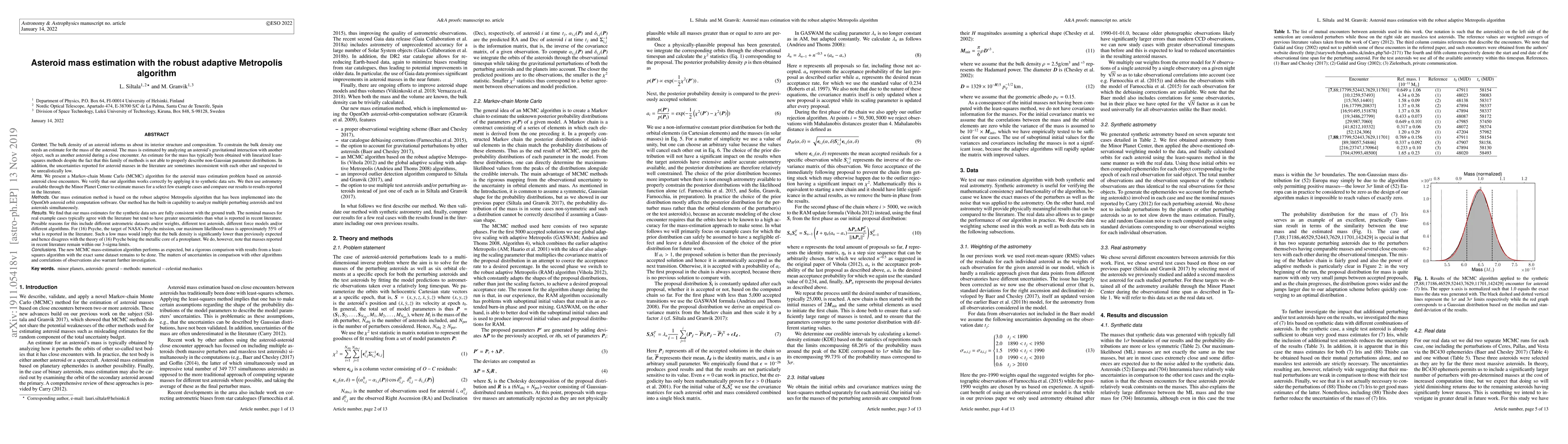 The bulk density of an asteroid informs us about its interior structure and composition. To constrain the bulk density one needs an estimate for the mass of the asteroid. The mass is estimated by analyzing an asteroid's gravitational interaction with another object, such as another asteroid during a close encounter. An estimate for the mass has typically been obtained with linearized least-squares methods despite the fact that this family of methods is not able to properly describe non-Gaussian parameter distributions. In addition, the uncertainties reported for asteroid masses in the literature are sometimes inconsistent with each other and suspected to be unrealistically low. We present a Markov-chain Monte Carlo (MCMC) algorithm for the asteroid mass estimation problem based on asteroid-asteroid close encounters. We verify that our algorithm works correctly by applying it to synthetic data sets. We then use astrometry available through the Minor Planet Center to estimate masses for a few example cases and compare our results to results reported in the literature. Our mass estimates for the synthetic data sets are fully consistent with the ground truth. The nominal masses for real example cases typically agree with the literature but tend to have greater uncertainties than what is reported in recent literature. Possible reasons for this include different astrometric datasets and/or weights, different test asteroids, different force models and different algorithms. For (16) Psyche, the target of NASA's Psyche mission, our maximum likelihood mass is approximately 55% of what is reported in the literature. Such a low mass would imply that the bulk density is significantly lower than previously expected and hence disagrees with the theory of (16) Psyche being the metallic core of a protoplanet. We however note that masses reported in recent literature remain within our 3-sigma limits.