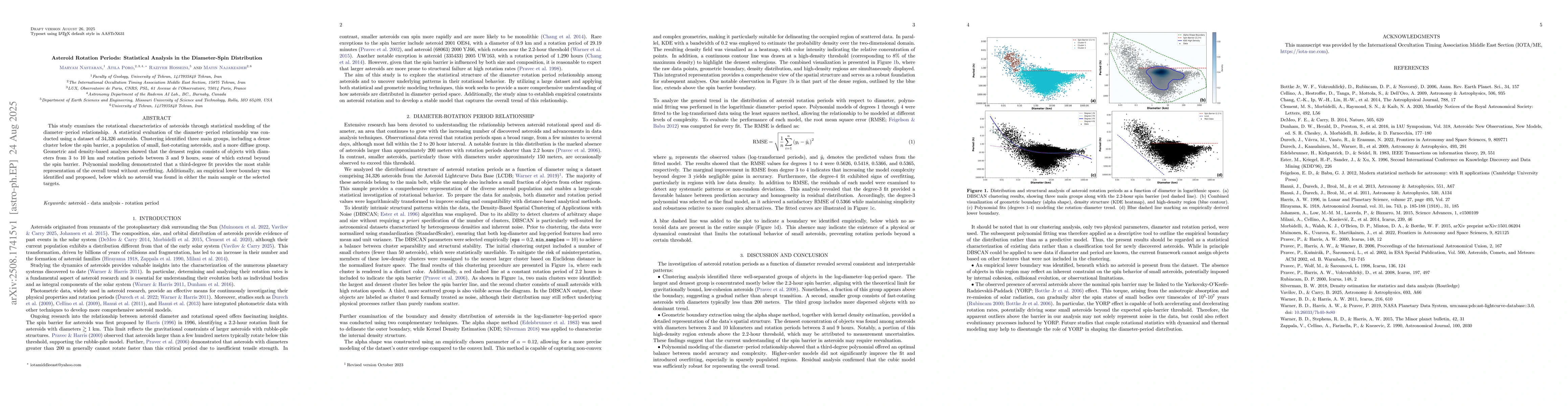 This study examines the rotational characteristics of asteroids through statistical modeling of the diameter-period relationship. A statistical evaluation of the diameter-period relationship was conducted using a dataset of 34,326 asteroids. Clustering identified three main groups, including a dense cluster below the spin barrier, a population of small, fast-rotating asteroids, and a more diffuse group. Geometric and density-based analyses showed that the densest region consists of objects with diameters from 3 to 10 km and rotation periods between 3 and 9 hours, some of which extend beyond the spin barrier. Polynomial modeling demonstrated that a third-degree fit provides the most stable representation of the overall trend without overfitting. Additionally, an empirical lower boundary was identified and proposed, below which no asteroid was found in either the main sample or the selected targets.