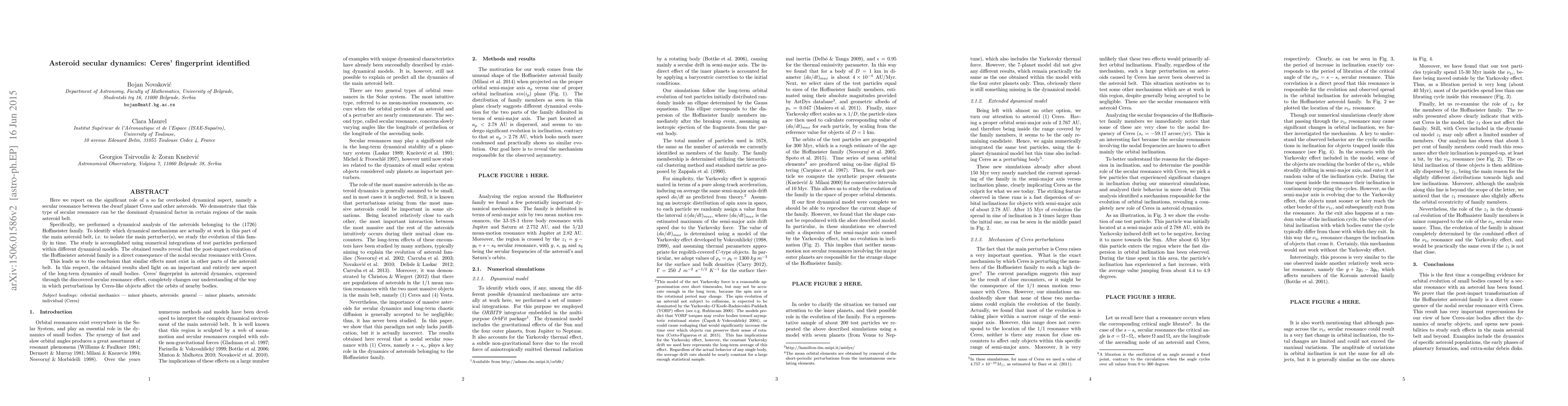 This paper identifies a significant secular resonance between Ceres and other asteroids, particularly the Hoffmeister family, revealing Ceres' dominant role in shaping the dynamical evolution of these bodies. The findings suggest that Ceres' influence reshapes our understanding of asteroid belt dynamics.