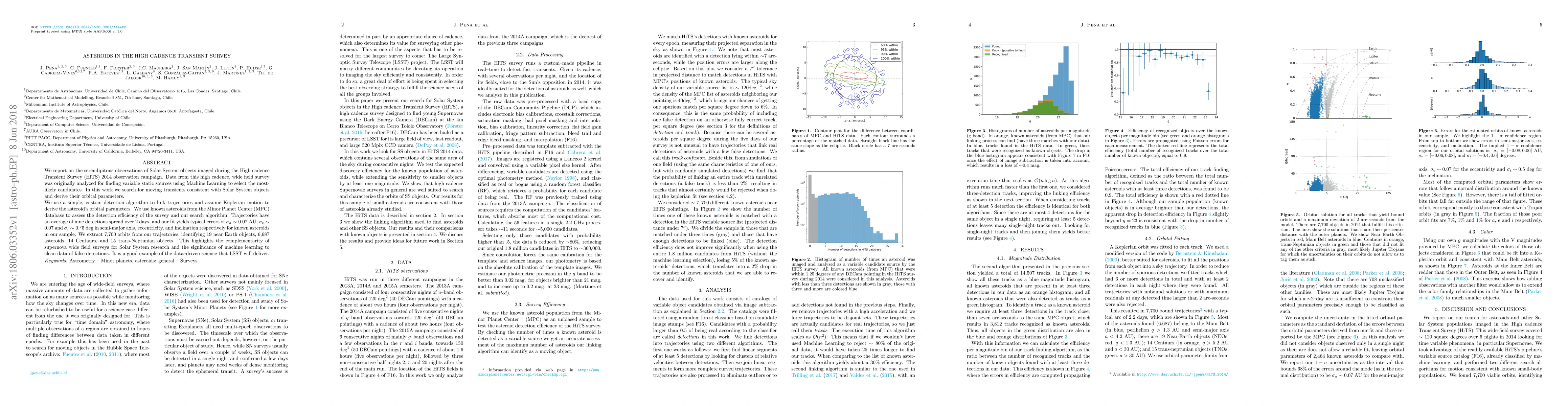 We report on the serendipitous observations of Solar System objects imaged during the High cadence Transient Survey (HiTS) 2014 observation campaign. Data from this high cadence, wide field survey was originally analyzed for finding variable static sources using Machine Learning to select the most-likely candidates. In this work we search for moving transients consistent with Solar System objects and derive their orbital parameters. We use a simple, custom detection algorithm to link trajectories and assume Keplerian motion to derive the asteroid's orbital parameters. We use known asteroids from the Minor Planet Center (MPC) database to assess the detection efficiency of the survey and our search algorithm. Trajectories have an average of nine detections spread over 2 days, and our fit yields typical errors of $\sigma_a\sim 0.07 ~{\rm AU}$, $\sigma_{\rm e} \sim 0.07 $ and $\sigma_i\sim 0.^{\circ}5~ {\rm deg}$ in semi-major axis, eccentricity, and inclination respectively for known asteroids in our sample. We extract 7,700 orbits from our trajectories, identifying 19 near Earth objects, 6,687 asteroids, 14 Centaurs, and 15 trans-Neptunian objects. This highlights the complementarity of supernova wide field surveys for Solar System research and the significance of machine learning to clean data of false detections. It is a good example of the data--driven science that LSST will deliver.