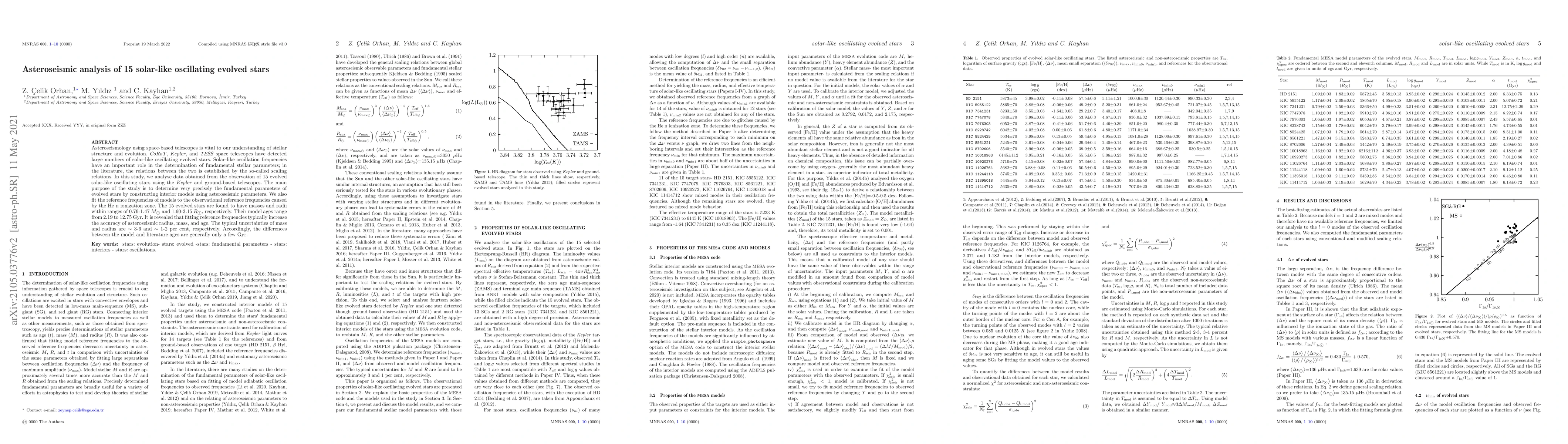 This study uses asteroseismic data from 15 evolved solar-like oscillating stars observed by {\textit{Kepler}} and ground-based {\textit{CoRoT}} telescopes to precisely determine their fundamental parameters. The analysis reveals stellar masses and radii within ranges of $0.79$-$1.47$ $M_{\rm sun}$ and $1.60$-$3.15$ $R_{\rm sun}$, respectively, and model ages from $2.19$ to $12.75$ Gyr, with improved accuracy achieved by fitting reference frequencies.