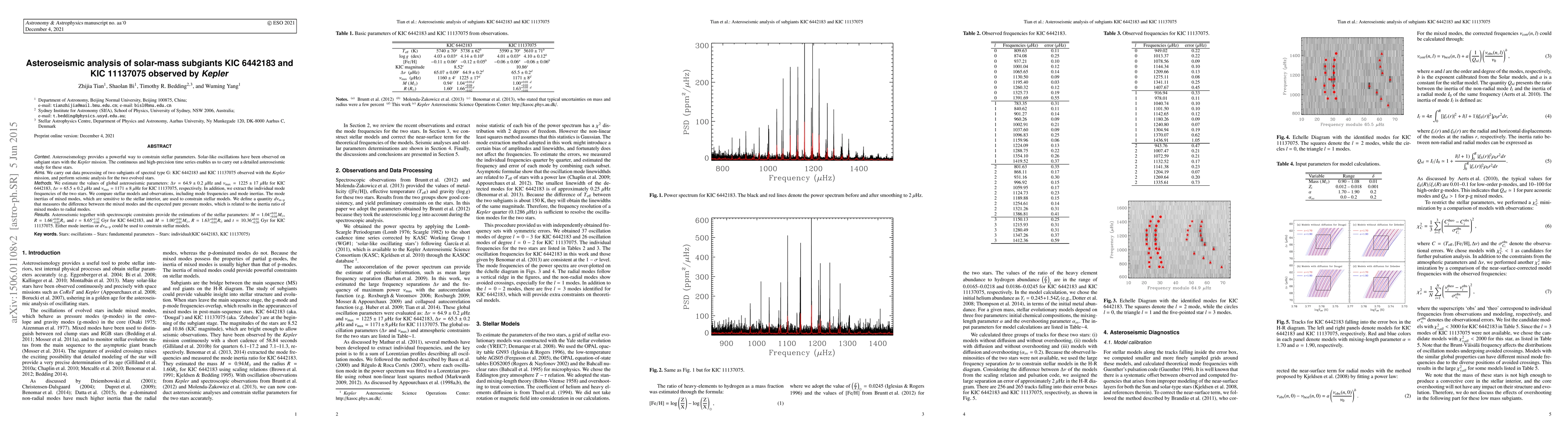 This paper conducts an asteroseismic analysis of two solar-mass subgiants, KIC 6442183 and KIC 11137075, using data from the Kepler mission. It estimates global asteroseismic parameters and compares them with stellar models to constrain the stars' interior structures and derive their physical properties.