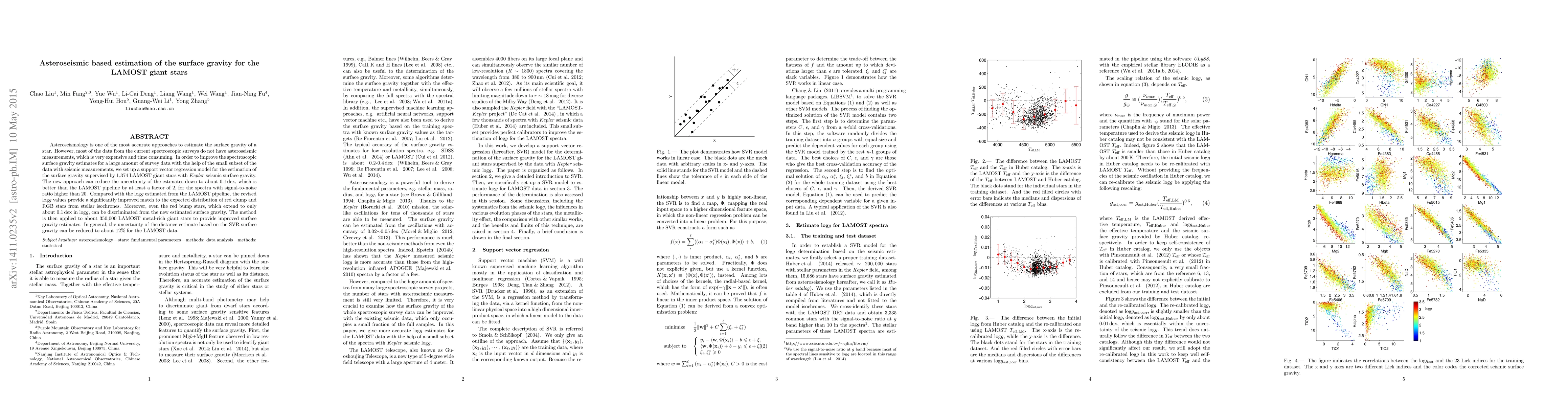 Asteroseismology is one of the most accurate approaches to estimate the surface gravity of a star. However, most of the data from the current spectroscopic surveys do not have asteroseismic measurements, which is very expensive and time consuming. In order to improve the spectroscopic surface gravity estimates for a large amount of survey data with the help of the small subset of the data with seismic measurements, we set up a support vector regression model for the estimation of the surface gravity supervised by 1,374 LAMOST giant stars with Kepler seismic surface gravity. The new approach can reduce the uncertainty of the estimates down to about 0.1 dex, which is better than the LAMOST pipeline by at least a factor of 2, for the spectra with signal-to-noise ratio higher than 20. Compared with the logg estimated from the LAMOST pipeline, the revised logg values provide a significantly improved match to the expected distribution of red clump and RGB stars from stellar isochrones. Moreover, even the red bump stars, which extend to only about 0.1 dex in logg, can be discriminated from the new estimated surface gravity. The method is then applied to about 350,000 LAMOST metal-rich giant stars to provide improved surface gravity estimates. In general, the uncertainty of the distance estimate based on the SVR surface gravity can be reduced to about 12% for the LAMOST data.