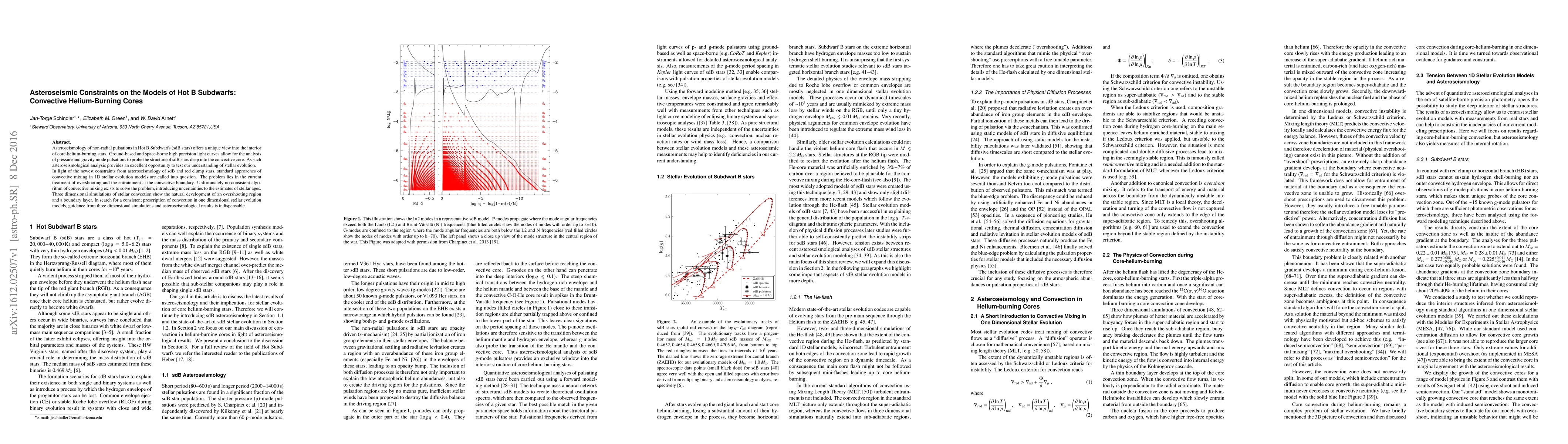 Asteroseismology of non-radial pulsations in Hot B Subdwarfs (sdB stars) offers a unique view into the interior of core-helium-burning stars. Ground-based and space-borne high precision light curves allow for the analysis of pressure and gravity mode pulsations to probe the structure of sdB stars deep into the convective core. As such asteroseismological analysis provides an excellent opportunity to test our understanding of stellar evolution. In light of the newest constraints from asteroseismology of sdB and red clump stars, standard approaches of convective mixing in 1D stellar evolution models are called into question. The problem lies in the current treatment of overshooting and the entrainment at the convective boundary. Unfortunately no consistent algorithm of convective mixing exists to solve the problem, introducing uncertainties to the estimates of stellar ages. Three dimensional simulations of stellar convection show the natural development of an overshooting region and a boundary layer. In search for a consistent prescription of convection in one dimensional stellar evolution models, guidance from three dimensional simulations and asteroseismological results is indispensable.