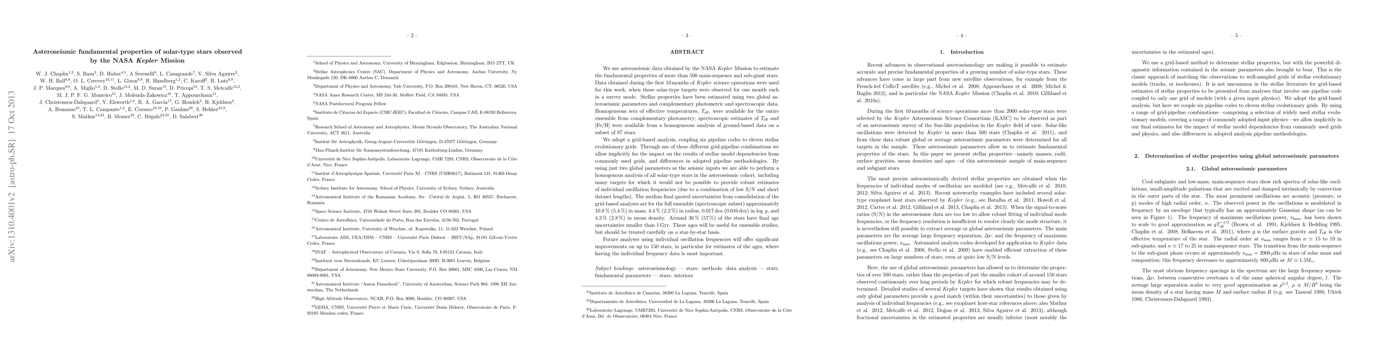 This study uses asteroseismic data from the NASA Kepler Mission to estimate fundamental properties of over 500 solar-type stars, employing global asteroseismic parameters, photometric, and spectroscopic data for precise measurements. Effective temperatures and metallicity ratios were obtained from both complementary photometry and ground-based spectroscopy.