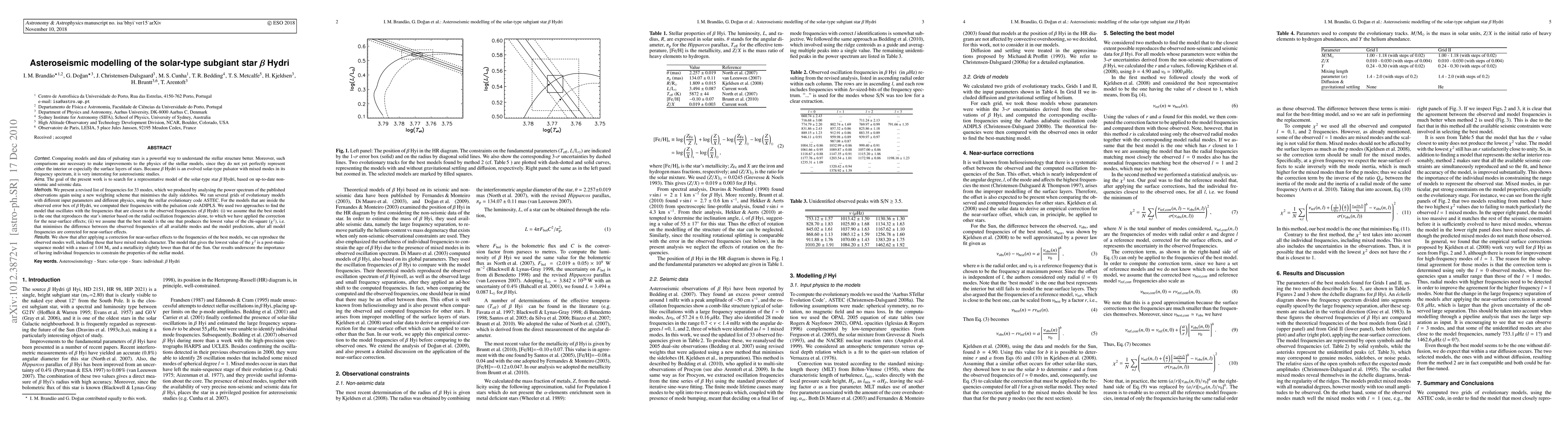 Asteroseismic modelling of beta Hydri using a combination of theoretical models and observational data was performed.