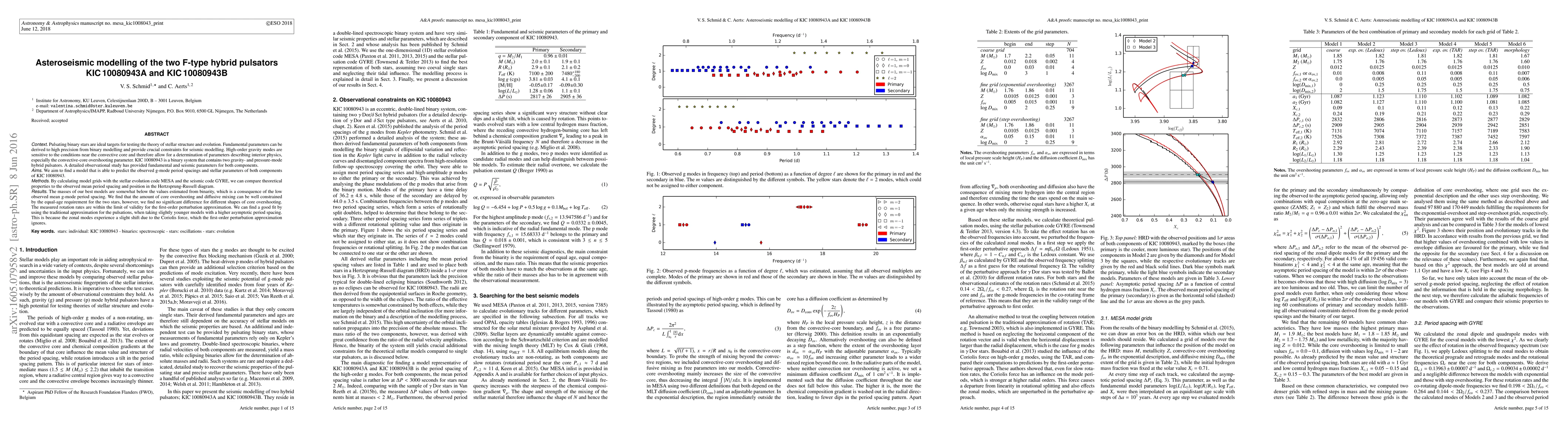 The research models two F-type hybrid pulsators in the KIC10080943A and KIC10080943B binary system using MESA and GYRE codes. It finds masses slightly lower than earlier estimates, constrains core overshooting and diffusive mixing, and explains discrepancies in period spacings using slightly younger models and the traditional perturbation approximation, accounting for Coriolis force effects.