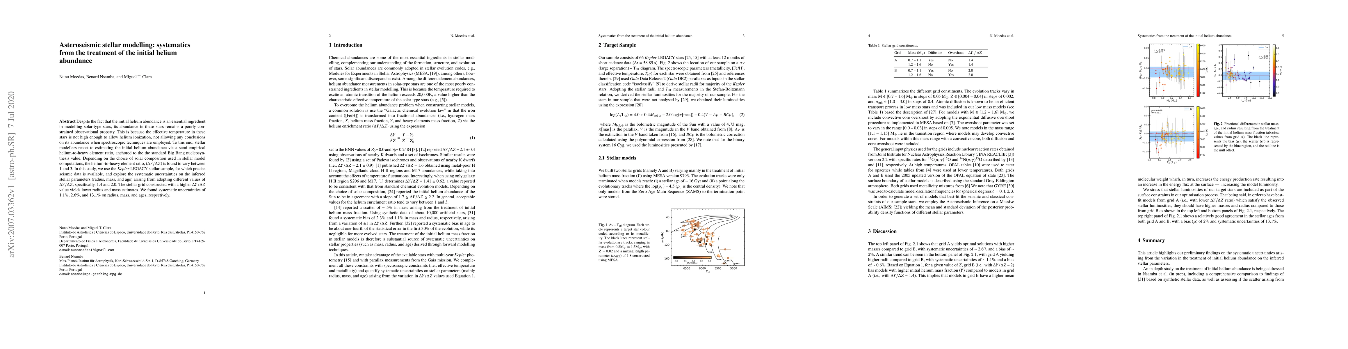 This paper investigates the impact of different initial helium abundances on asteroseismic stellar modelling, finding that varying the helium-to-heavy element ratio ($\Delta Y/\Delta Z$) leads to systematic uncertainties of 1.1%, 2.6%, and 13.1% on radius, mass, and age estimates, respectively. Higher ratios yield lower radius and mass estimates.