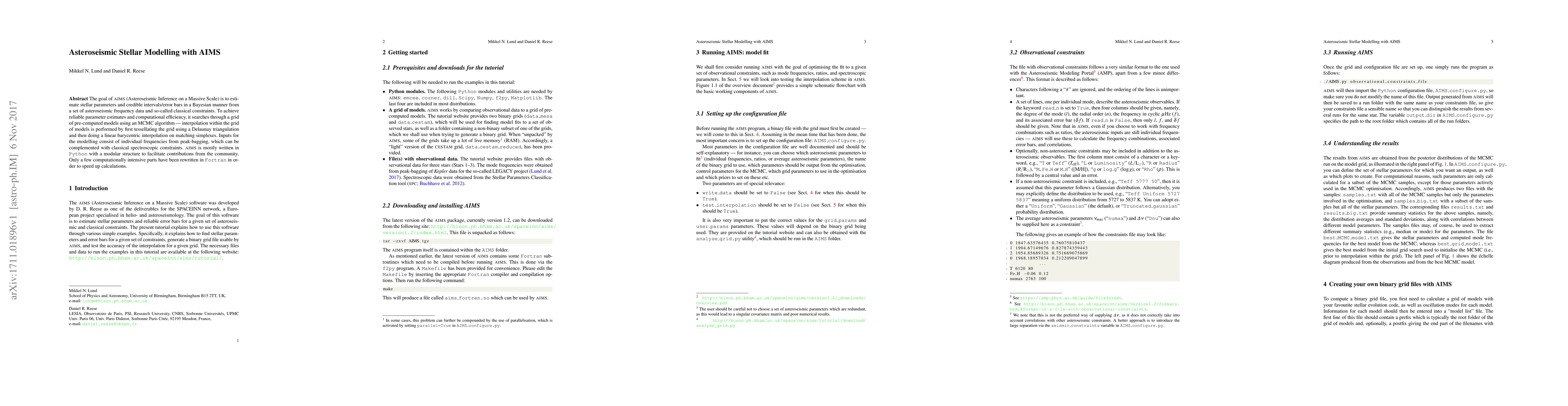 AIMS is a Bayesian method that uses asteroseismic frequency data to estimate stellar parameters with credible intervals. It efficiently models complex stars using a grid of pre-computed models and achieves reliable parameter estimates through interpolation and Monte Carlo simulations.