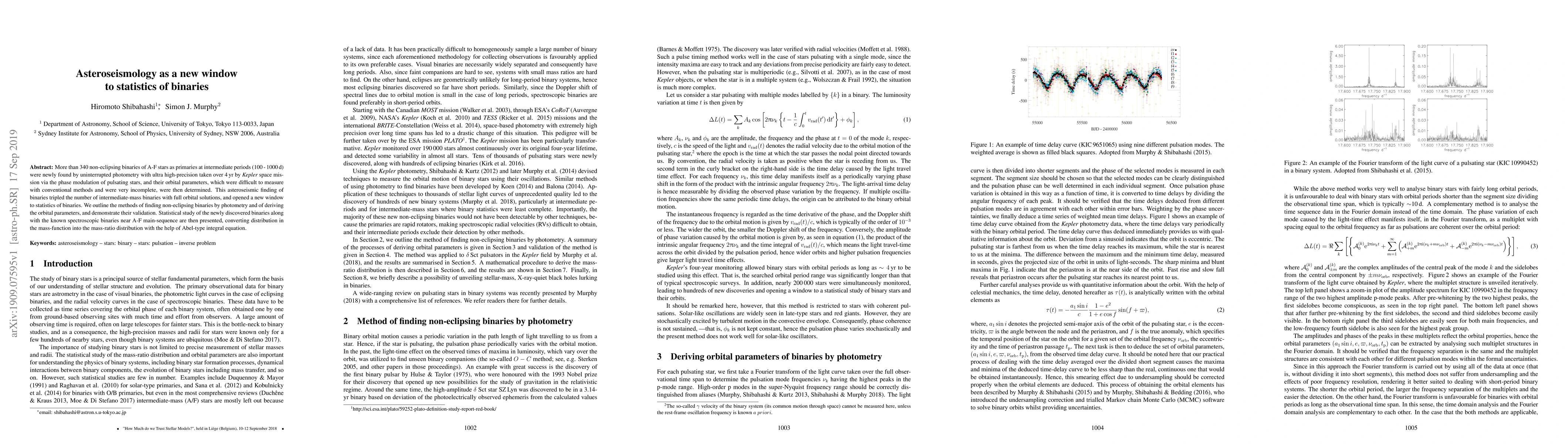 More than 340 non-eclipsing binaries of A-F stars as primaries at intermediate periods (100-1000 d) were newly found by uninterrupted photometry with ultra high-precision taken over 4 yr by Kepler space mission via the phase modulation of pulsating stars, and their orbital parameters, which were difficult to measure with conventional methods and were very incomplete, were then determined. This asteroseismic finding of binaries tripled the number of intermediate-mass binaries with full orbital solutions, and opened a new window to statistics of binaries. We outline the methods of finding non-eclipsing binaries by photometry and of deriving the orbital parameters, and demonstrate their validation. Statistical study of the newly discovered binaries along with the known spectroscopic binaries near A-F main-sequence are then presented, converting distribution in the mass-function into the mass-ratio distribution with the help of Abel-type integral equation.