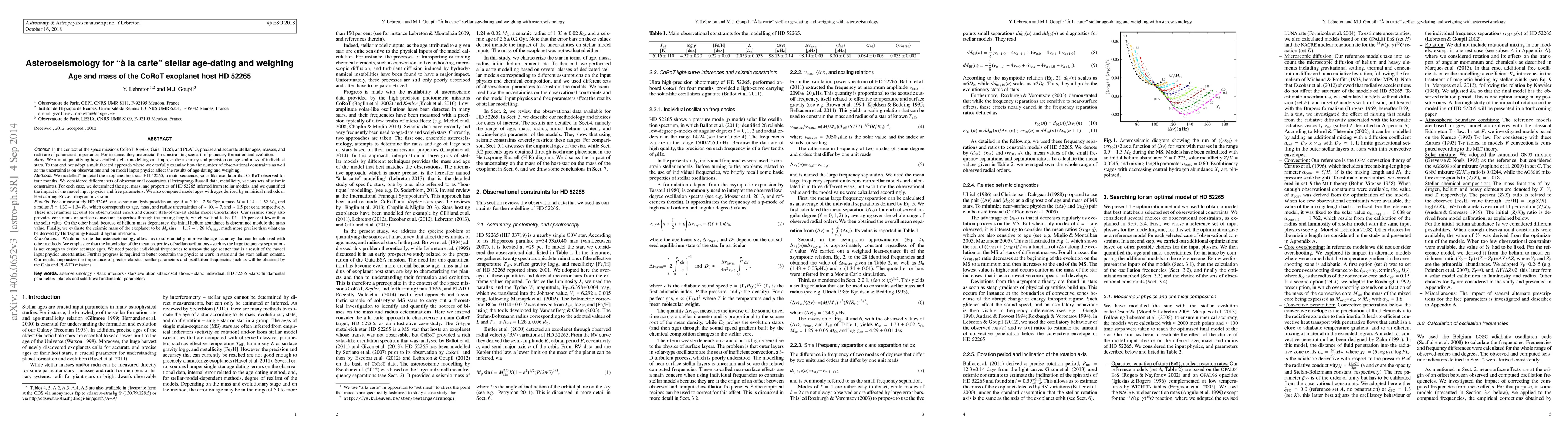 This paper uses asteroseismology to determine the age, mass, and radius of the star HD 52265, host of an exoplanet observed by CoRoT. The study finds an age of 2.10-2.54 Gyr, a mass of 1.14-1.32 Msun, and a radius of 1.30-1.34 Rsun, demonstrating that precise individual seismic frequencies significantly improve age accuracy compared to traditional methods.