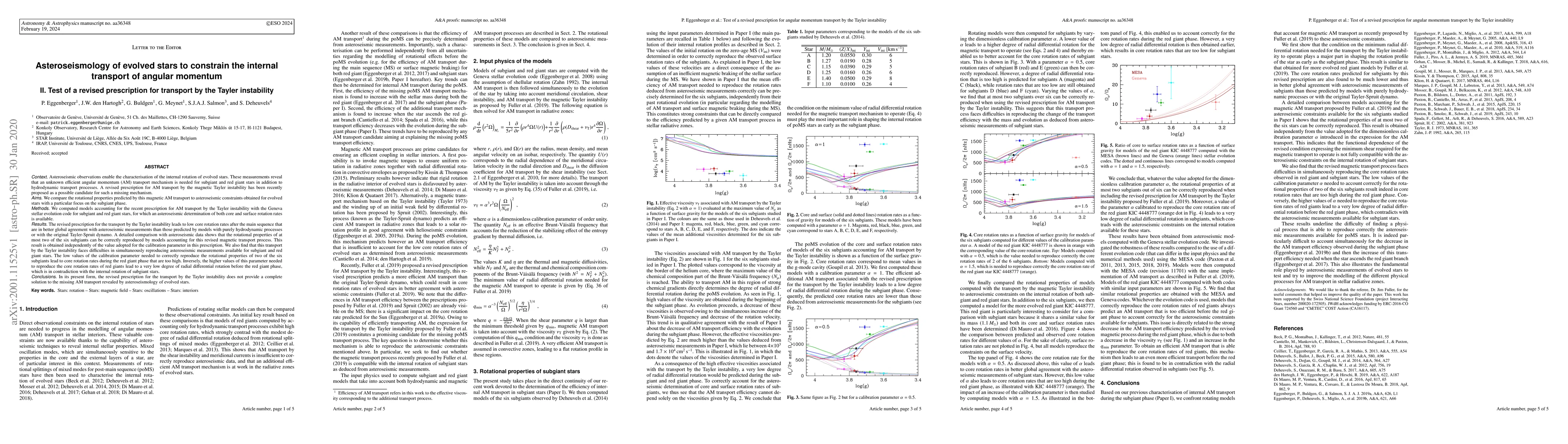This paper tests a revised model for angular momentum transport via the Tayler instability in evolved stars, finding it partially successful in matching asteroseismic data for subgiants but failing to simultaneously fit data for both subgiants and red giants. The model shows promise but lacks a complete solution for the missing angular momentum transport mechanism.